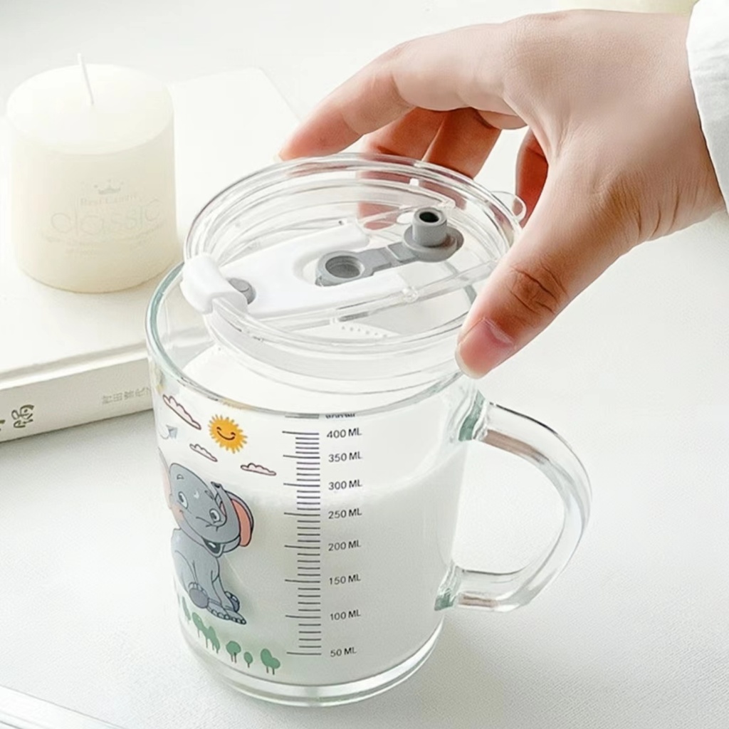 VOOVA Gelas Air Anak Gelas Susu Kartun Gelas Sarapan Anak Gelas Anak Sedotan Gratis 400ML Murah Gratis Ongkir