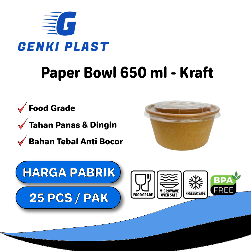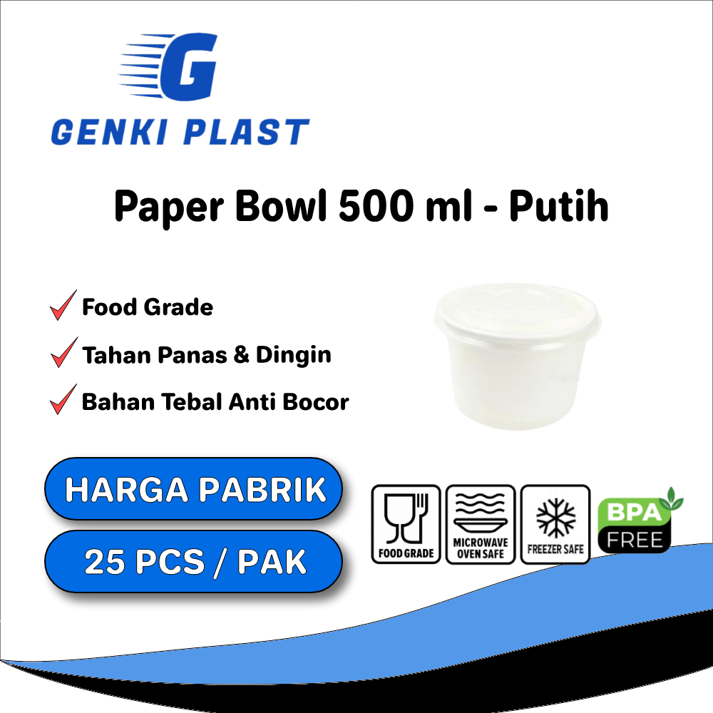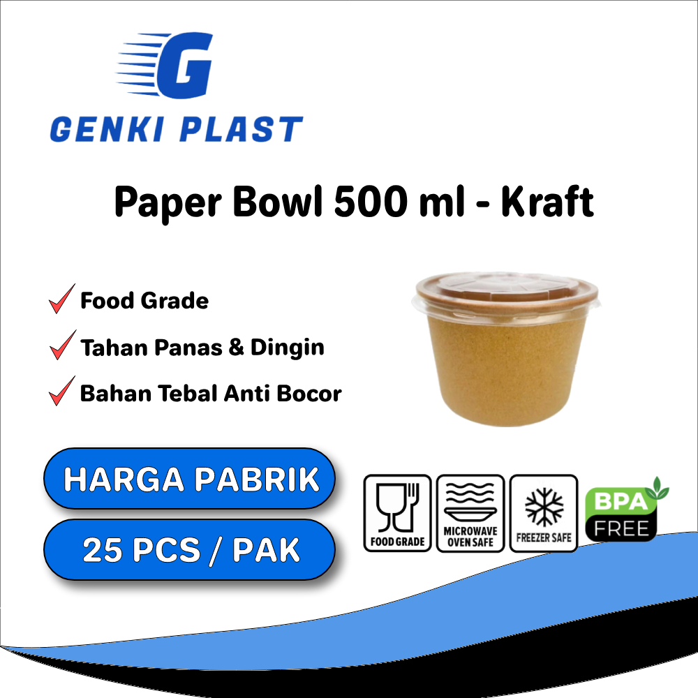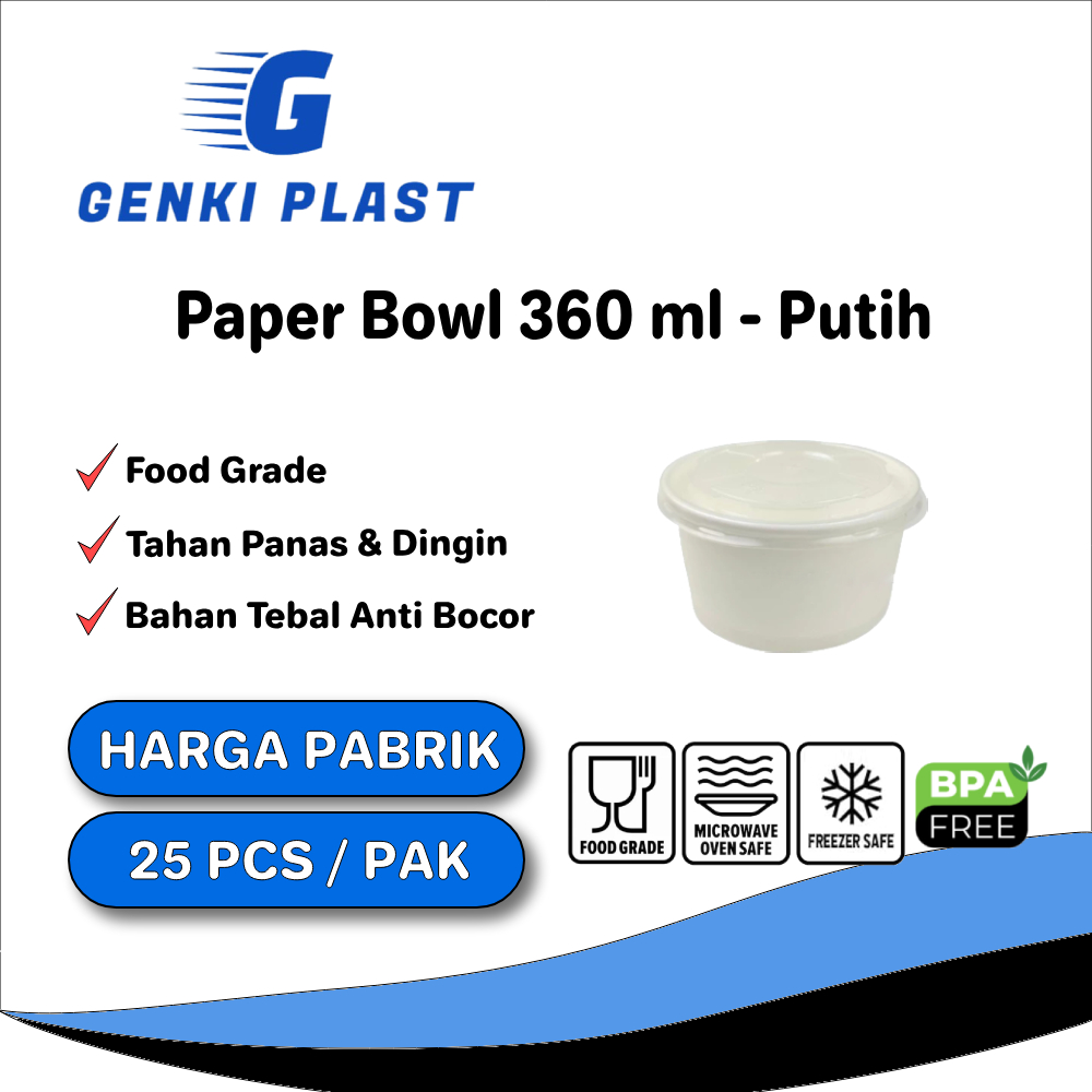 Paper Bowl All Size + Tutup (360ml, 500ml, 650ml, 800ml) / Mangkok Kertas Bakso / Rice Bowl Paper Murah Gratis Ongkir