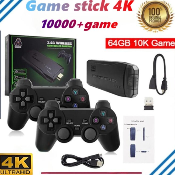 SMARTCOM - 2.4g Wireless Controller Game Stick 4K Gaming Consule Video 64GB Bawaan 20000 Games Gamepad