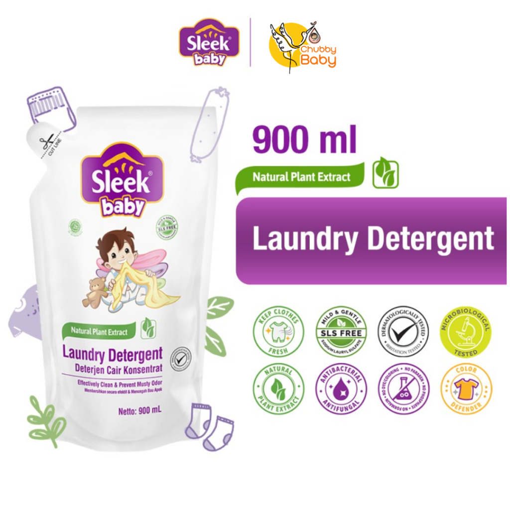 Sleek Baby Laundry Detergent Refill 900ml Anti Jamur