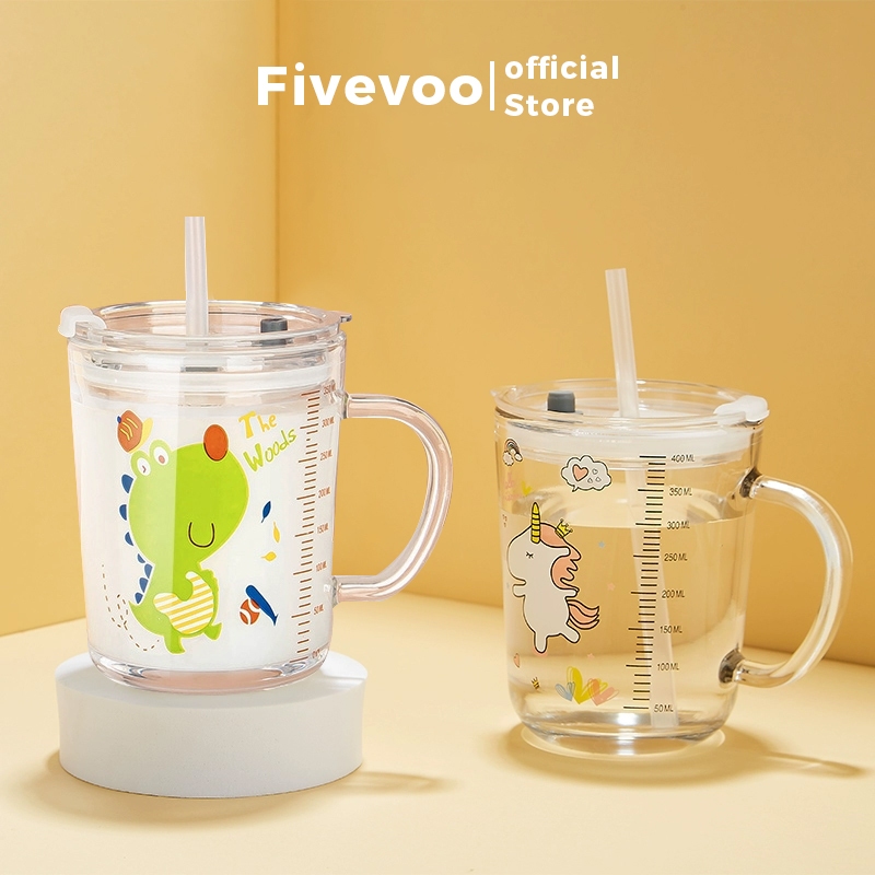 FIVEVOO Gelas Kaca Serbaguna Motif Cartoon / Gelas Anak / Gelas Susu Kartun / Gelas Sereal Anak Murah Gratis Ongkir