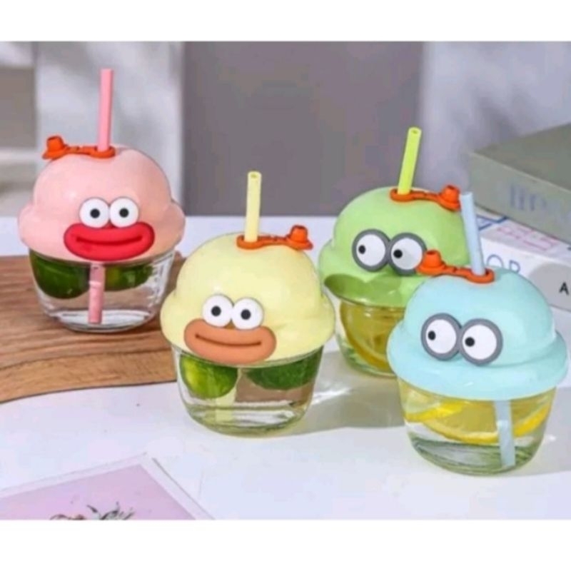 BOTOL MINI/GELAS MINI KACA IMUT ANAK KARAKTER Murah Gratis Ongkir