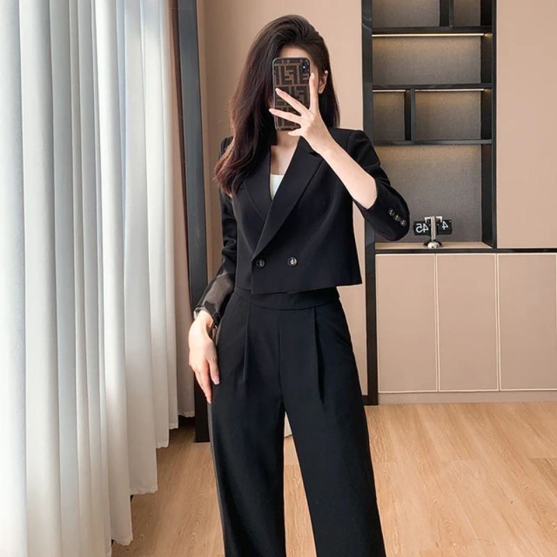 Setelan Jas Blazer Crop Wanita Set Jas Crop Wanita High Twist Murah Gratis Ongkir