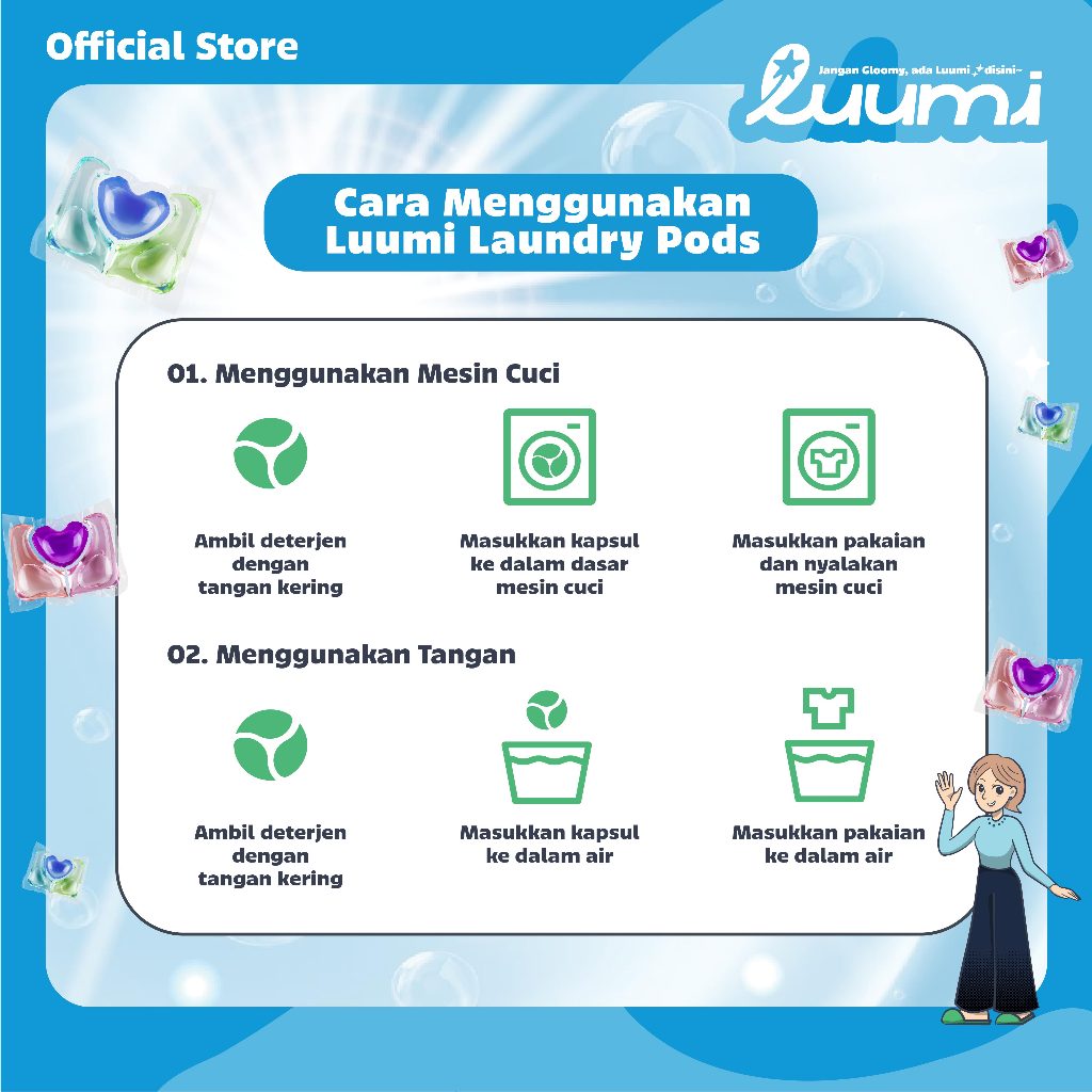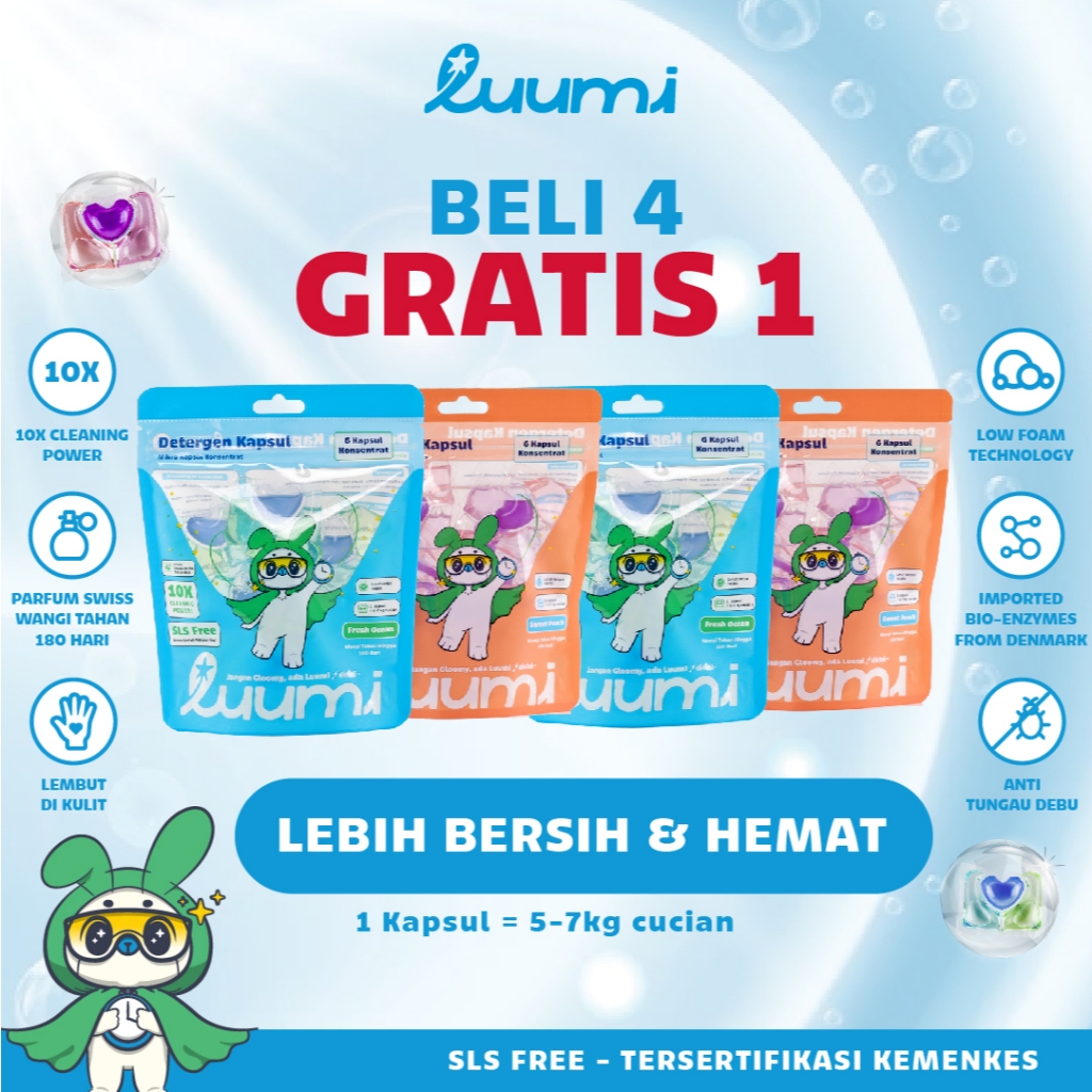 [GRATIS DETERGEN KAPSUL] Luumi Detergen Kapsul Konsentrat 3-in-1 (Kantong Isi 6) Dengan 10x Kekuatan, Wangi Tahan Lama |