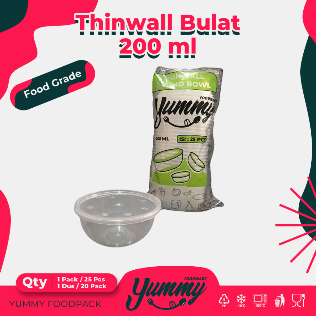 (1 Pack isi 25 pcs ) Thinwall Round Bowl 200ml / Mangkok Plastik / Cup Pudding Bulat Murah Gratis Ongkir