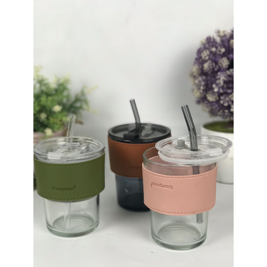 Grosir Termurah Tumblr Kaca 400ml Sedotan Gorgous dan Tutup Gelas Kopi | Tumblr Aesthetic Murah Gratis Ongkir