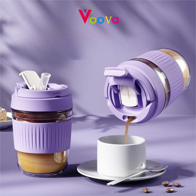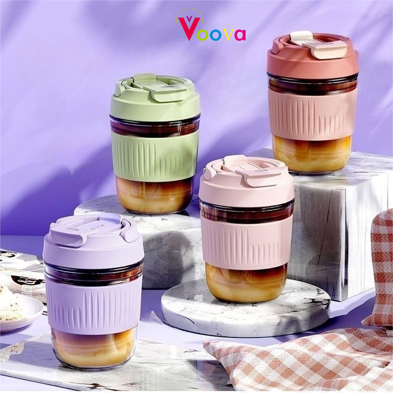 VOOVA Gelas Kopi Gelas/Gelas Siswa/Gelas Dengan Sedotan/360 ° Anti Bocor Murah Gratis Ongkir