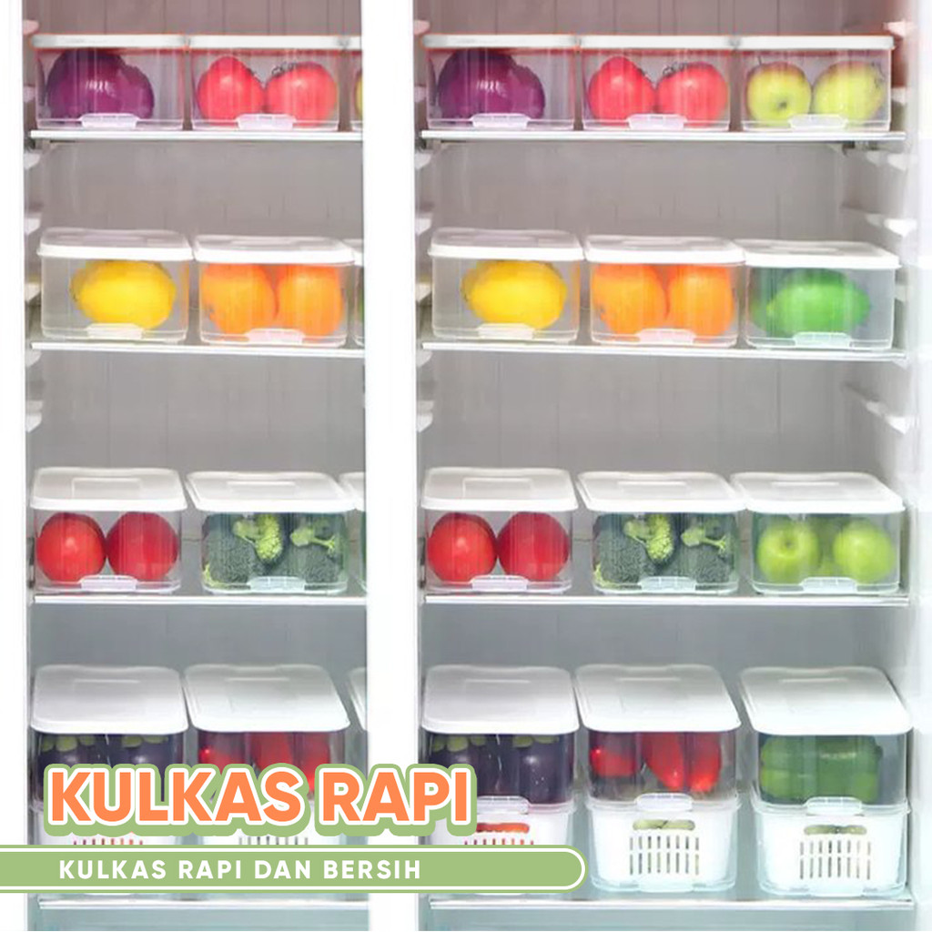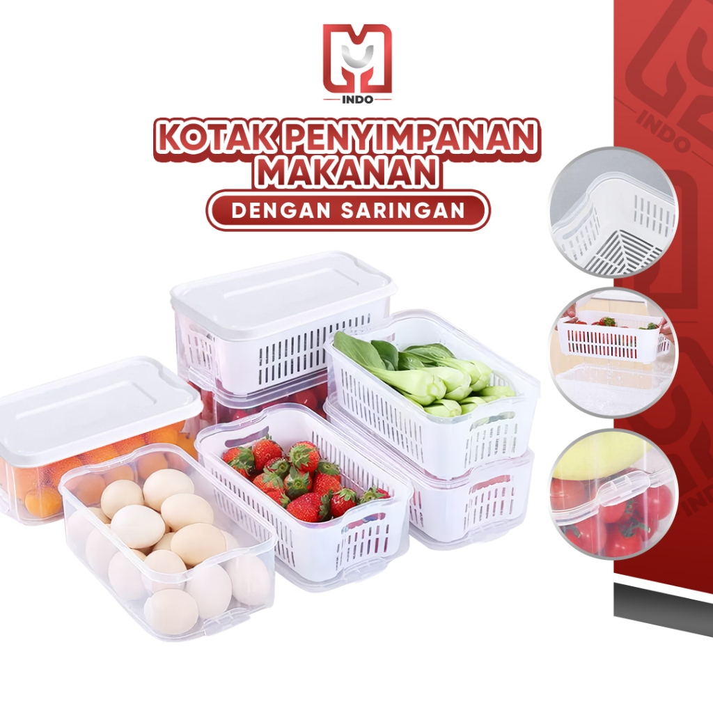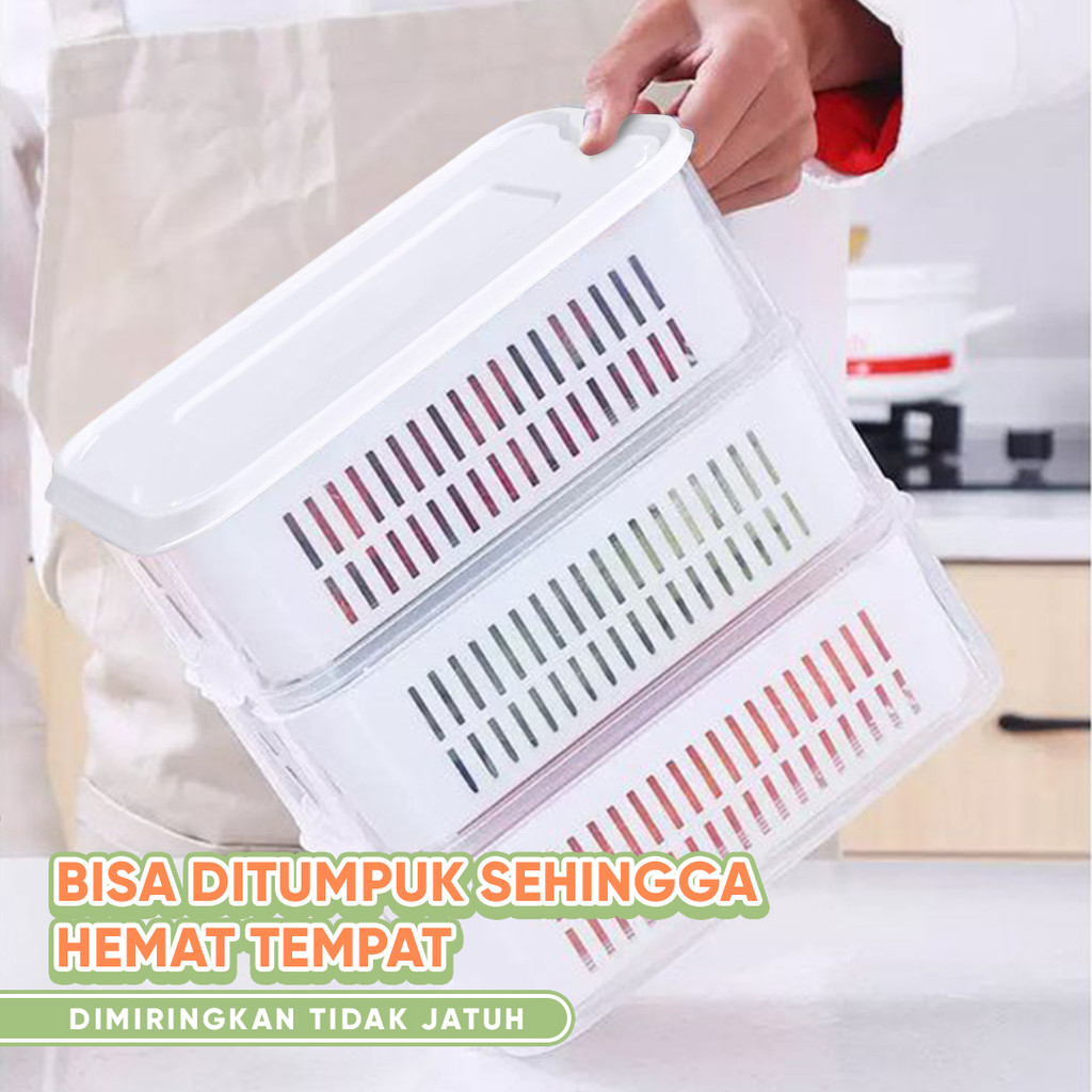 Kotak Penyimpanan Makanan dengan Saringan L06-L07 Food Container Transparan/Fresh Box Kedap Udara Murah Gratis Ongkir