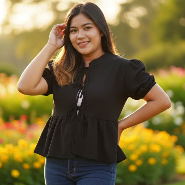 T0P | Blouse Korea | Atasan Perempuan | Ribbon Top | Coquette Top