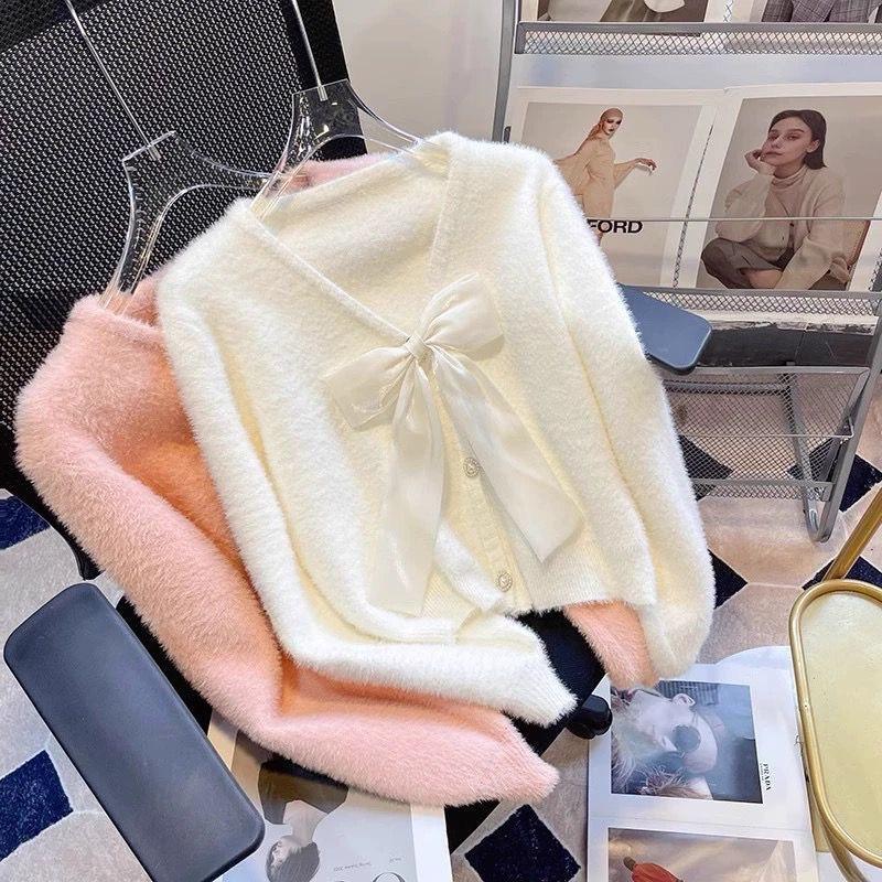 er Premium Rajut Salju Halus 860 Cardigan Pita Cute Atasan Wanita Sweater