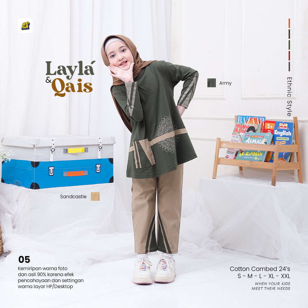 [Star] Hoofla Simple Ethnic Layla Baju Muslimah Anak 5-12 Tahun Setelan Casual