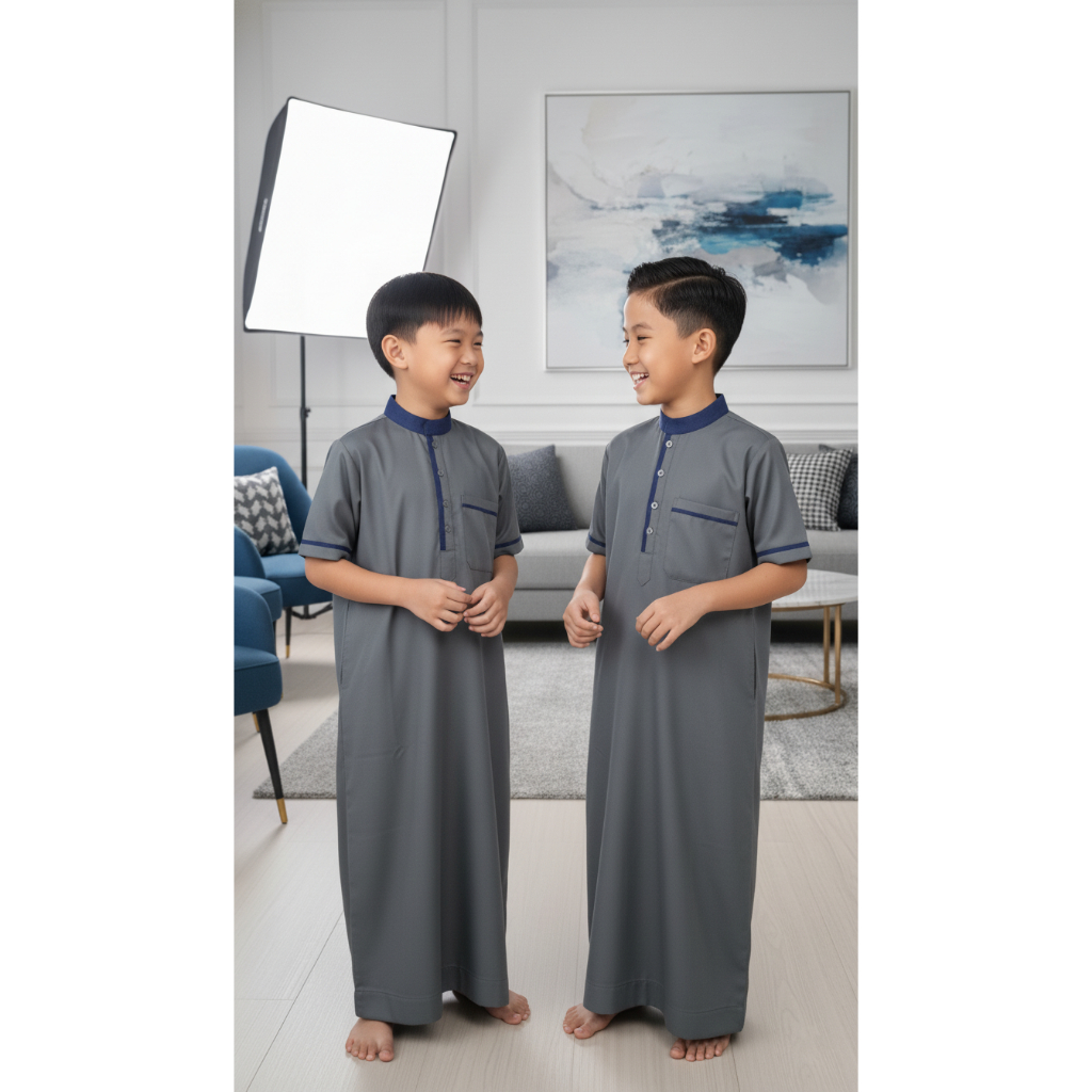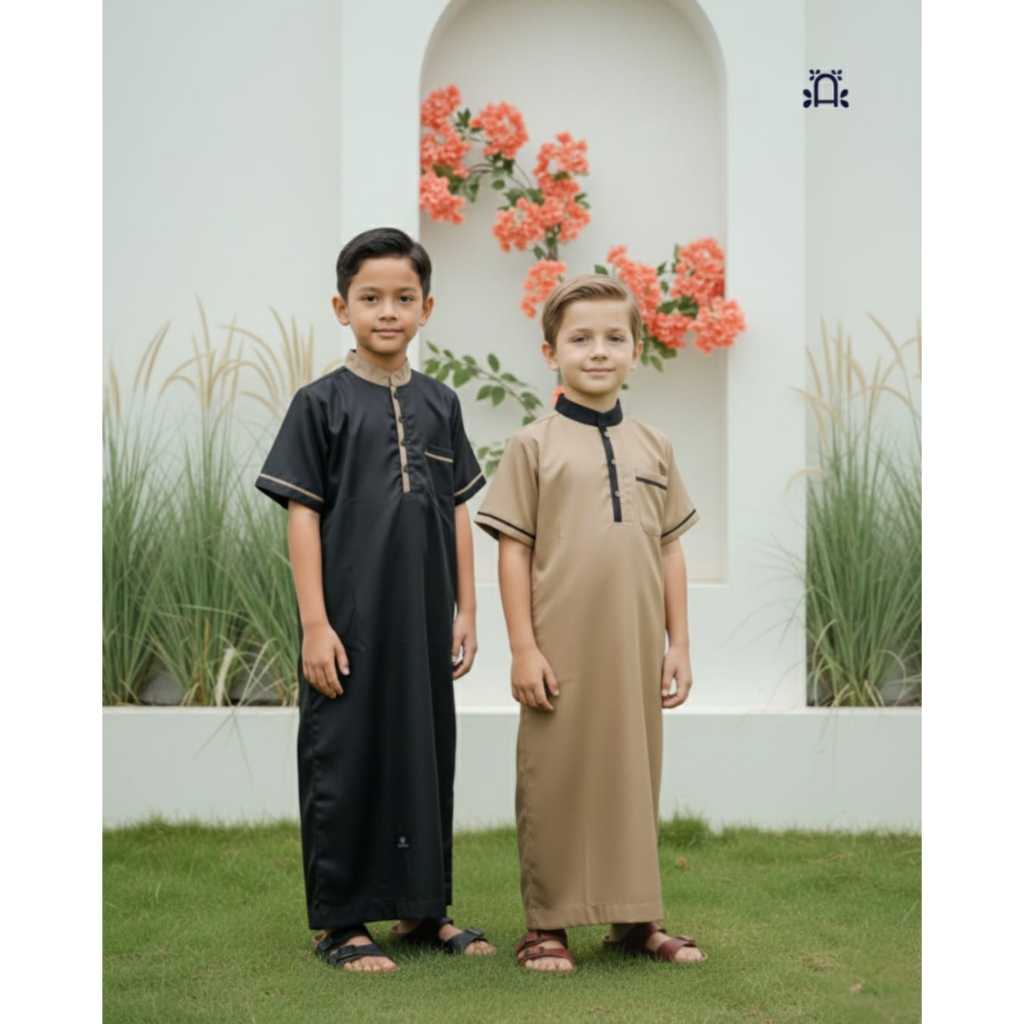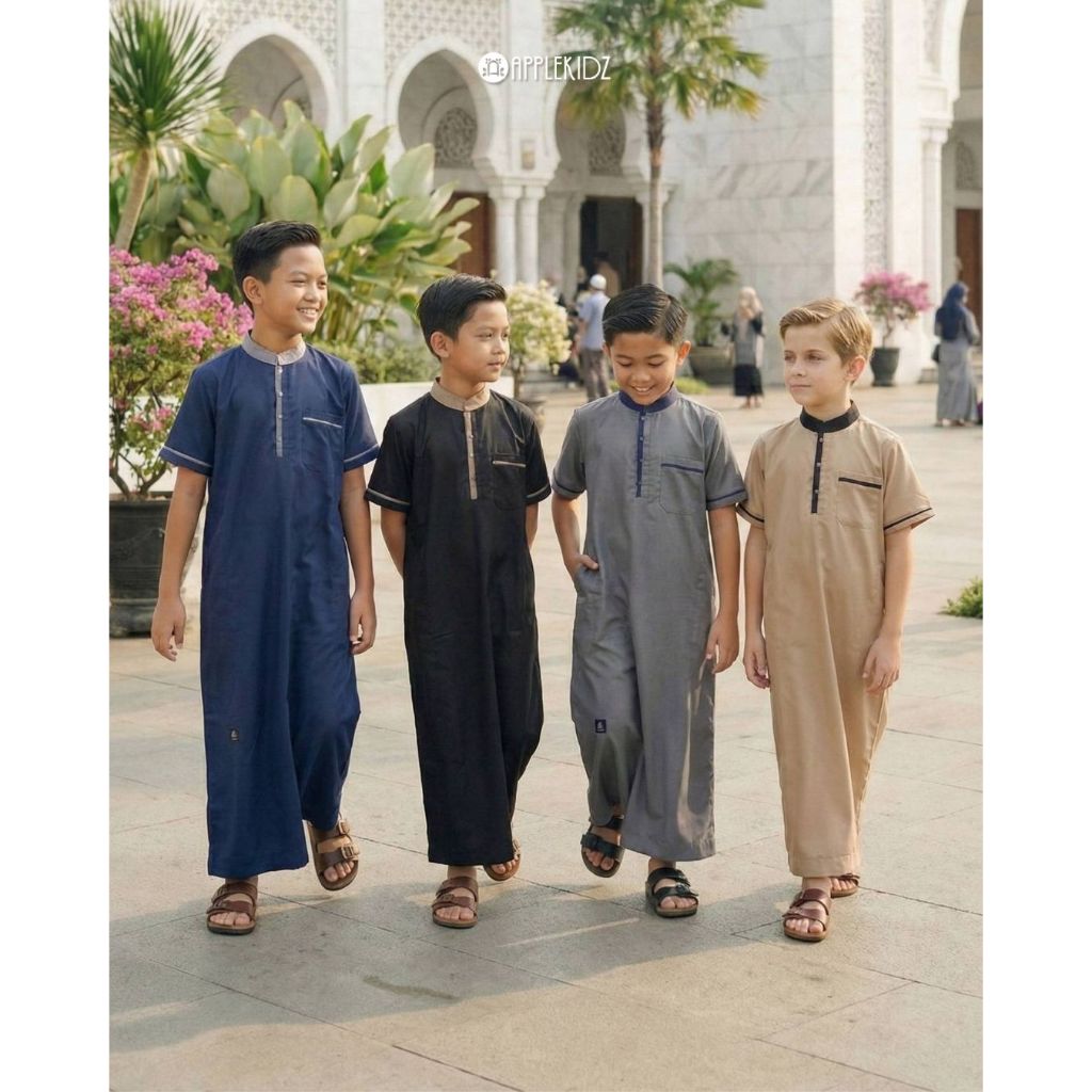 [Star] Applekidz Baju Muslim Jubah Gamis Anak Laki 4-10 Thn Bahan Toyobo Lengan Pendek Polos Koko Arbi