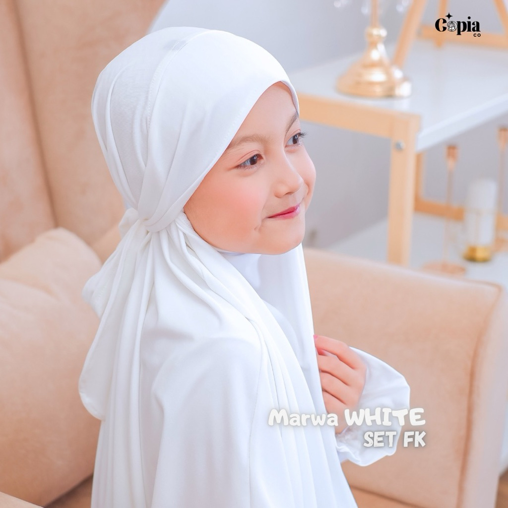 [Star] Copiaco - Marwa Set French Khimmar Gamis Jersey Anak Perempuan Syari Umur 3-13 Tahun - White
