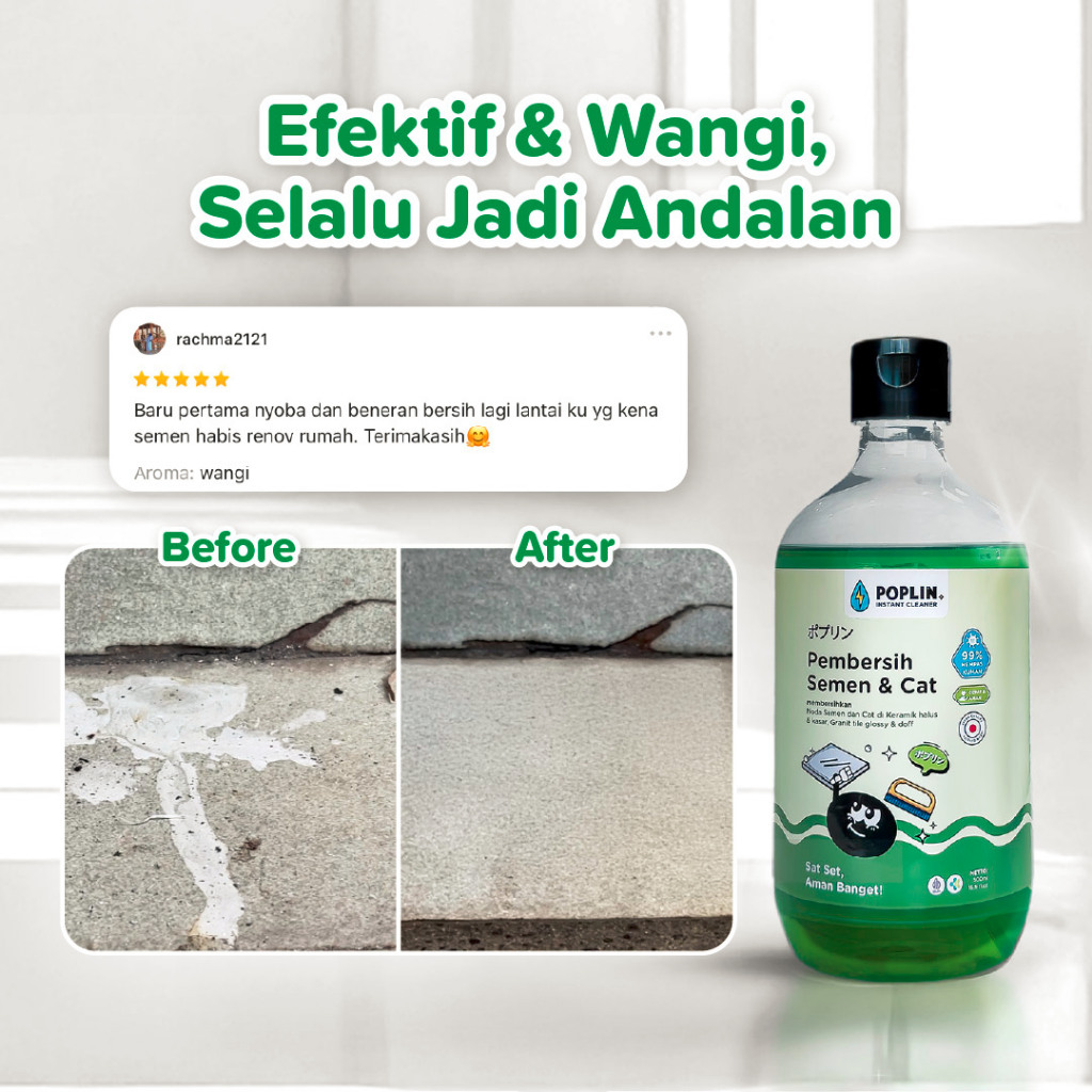 POPLIN Pembersih Semen dan Cat - Keramik Granit Tile | Praktis | Cepat | Aman tanpa kimia keras | Halal | FREE sabut