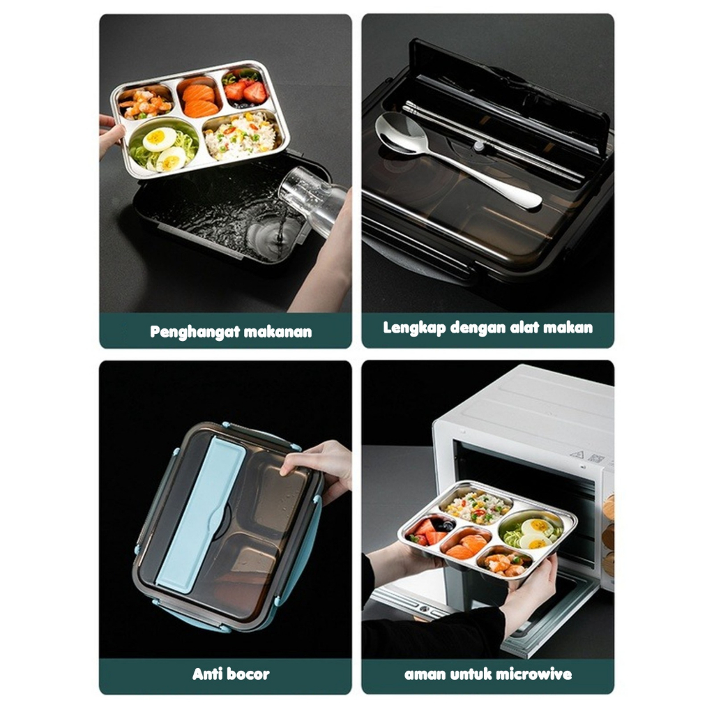 Nexxio Lunch Box Kotak Makan Sekat Stainless / Lunch Box Stainless Tahan Panas Dan Anti Tumpah Murah Gratis Ongkir