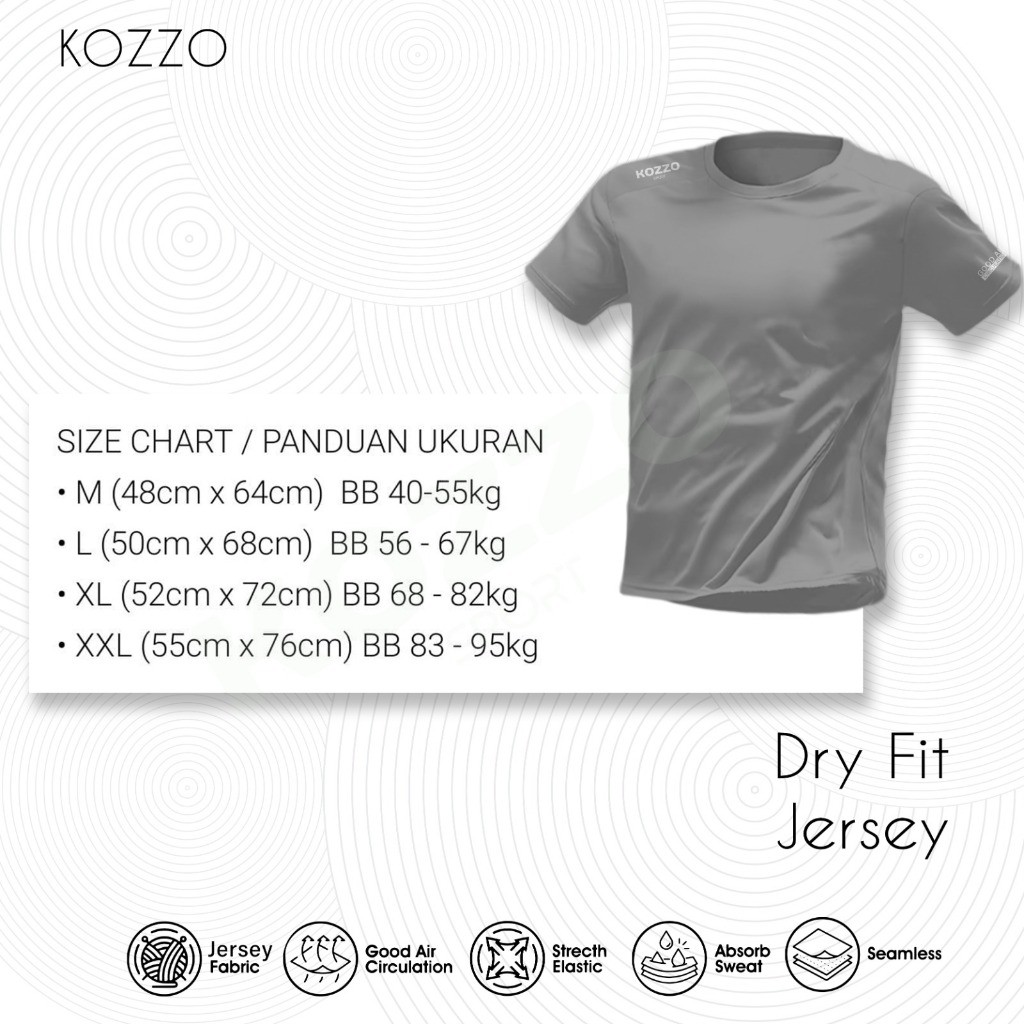 Paket 3 pcs Kaos Baju Olahraga Pria T-Shirt Jersey Lari KOZZO Bahan Dry Fit Breathable Quickdry Murah Gratis Ongkir