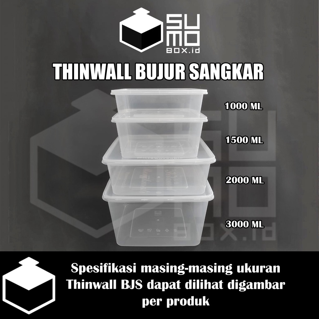 Thinwall BUJUR SANGKAR 1500ml + Tutup / Kotak Makan Plastik 1500 ml FREE PACKING [ECERAN] Murah Gratis Ongkir