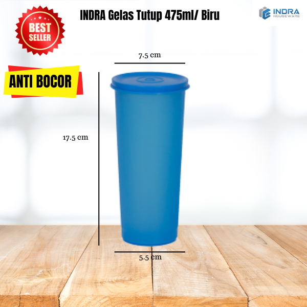 Tumbler Gelas Plastik 475 ml + Tutup – Indra Houseware • BPA Free • Tahan Panas & Dingin Murah Gratis Ongkir