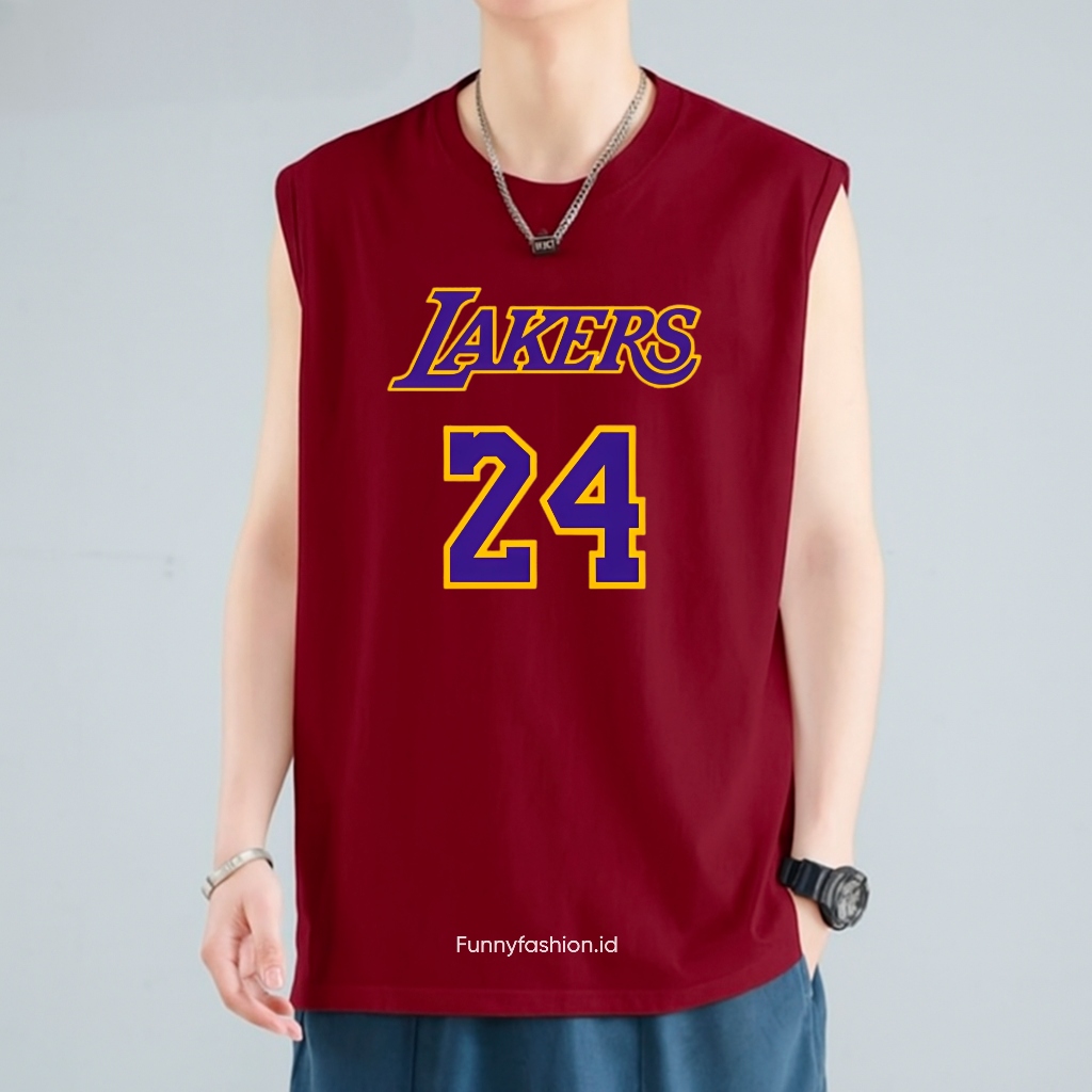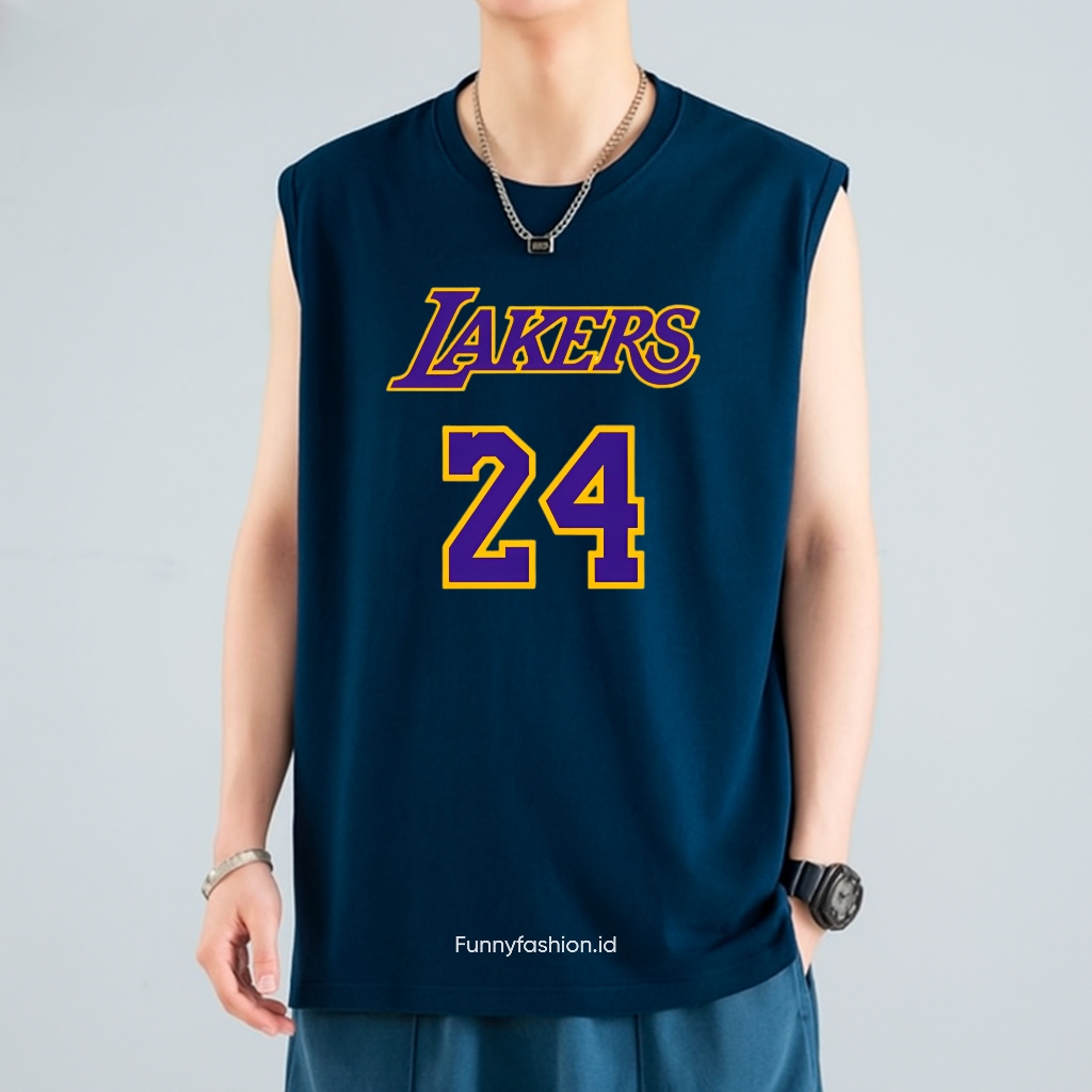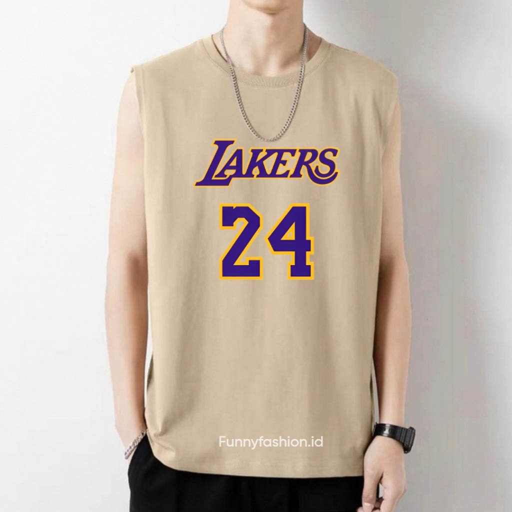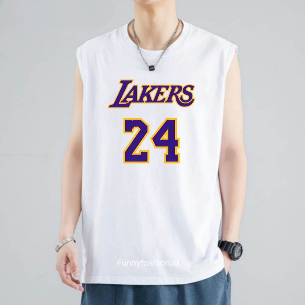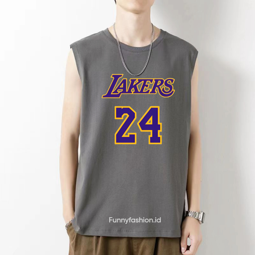 Funnyfashion Singlet Pria Gym Lakers 24 – Tanktop Harian Adem – Singlet Distro Keren Murah Gratis Ongkir