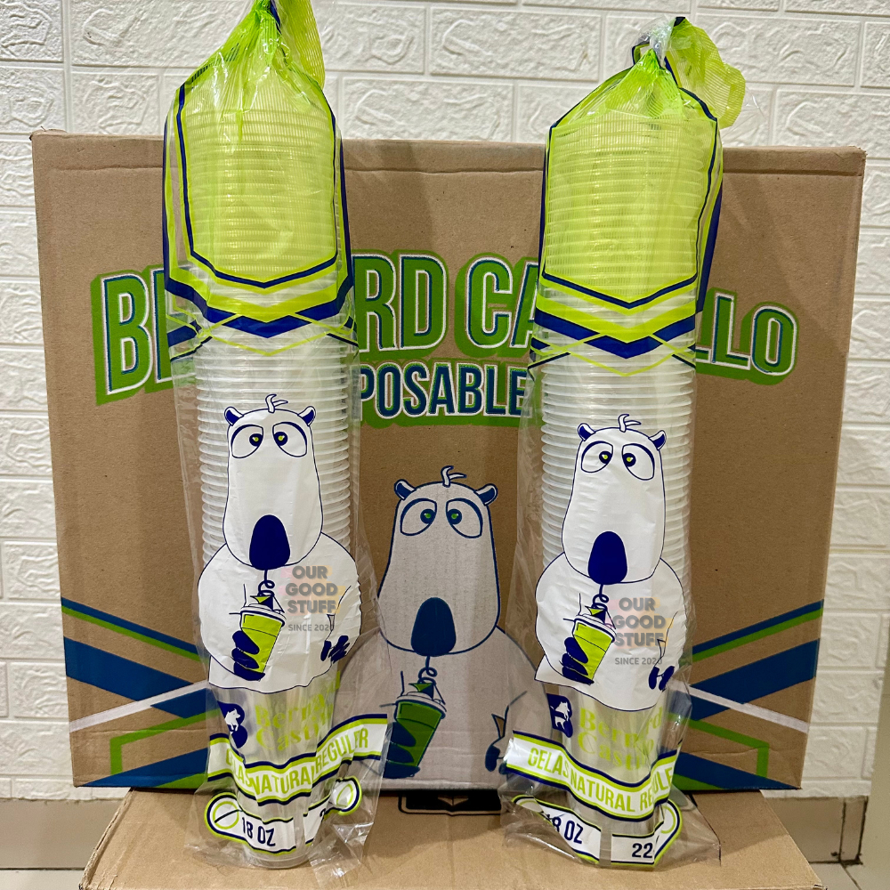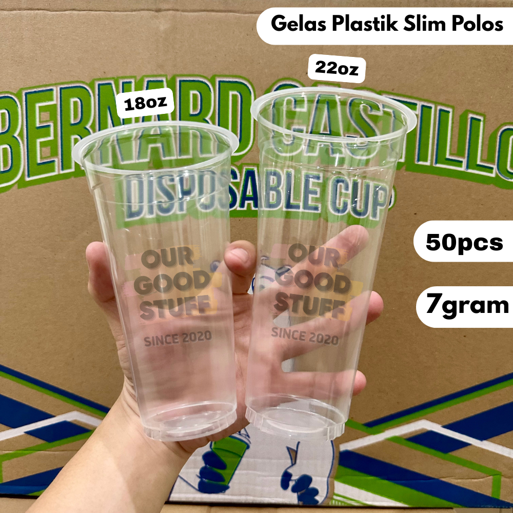 Gelas Plastik Bernard Castilo 18oz 22oz Slim Datar isi 50pcs 7gram / Gelas Datar Slim Bening 18oz 22oz Slim / Gelas Bern