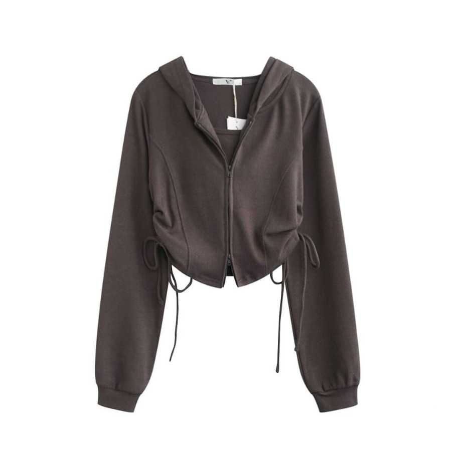 Jaket Wanita Korean Style Adella Crop Zipper Serut - jaket casual atasan wanitan kekinian