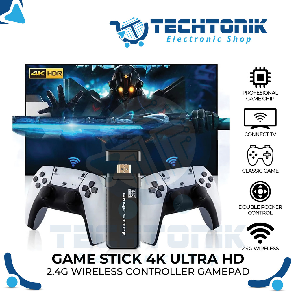 Game Stick 4K 20.000 Games UltraHD M8 Pro Console Portable HDMI 2.4GHz Wireless Controller, BERGARANSI RESMI - Techtonik