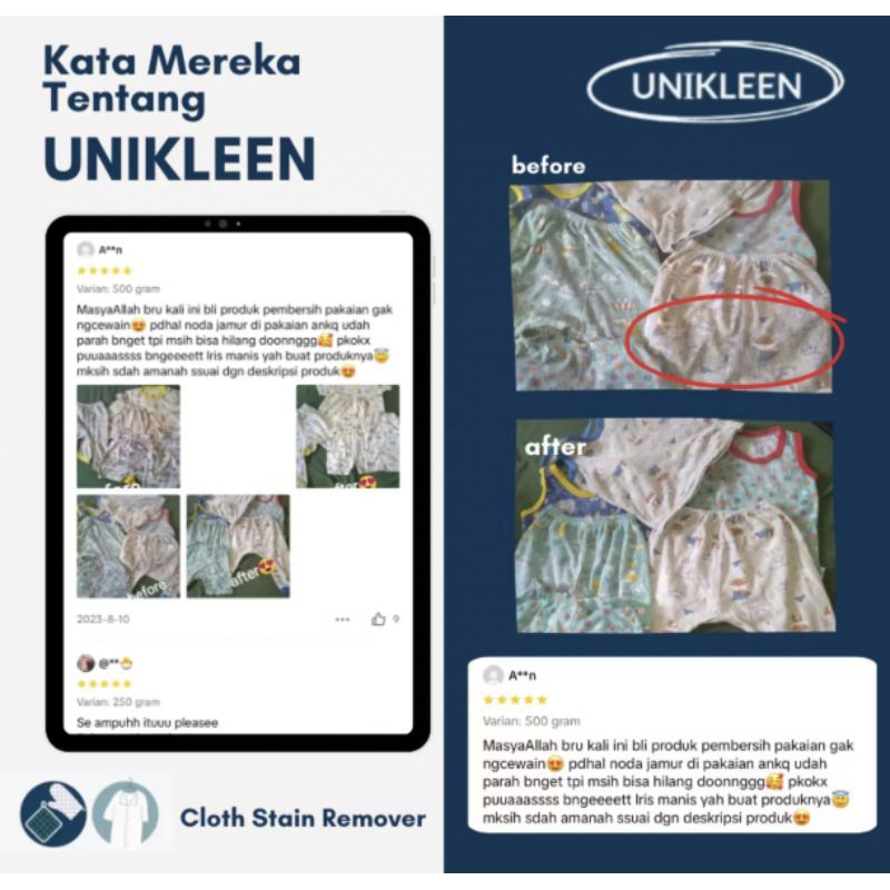 UNIKLEEN - Pembersih Pakaian | Sabun Cuci Baju Penghilang Jamur Noda Cloth Stain Remover