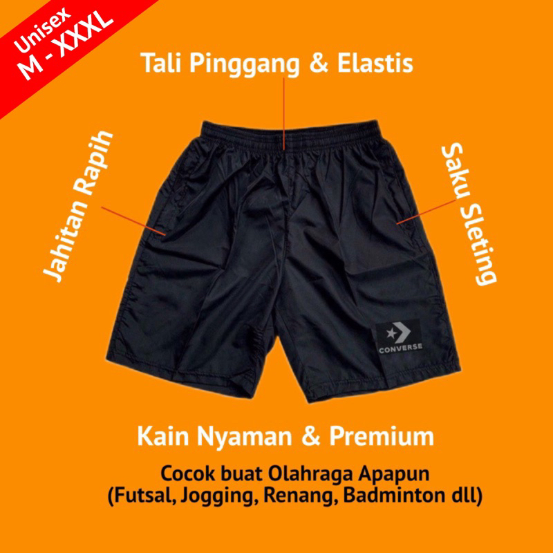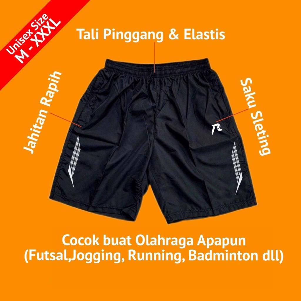 Celana Pendek Olahraga Saku Resleting Pria Wanita Running Gym Sport Kolor Volly Futsal Bulu Tangkis Jogging Bahan Berkul