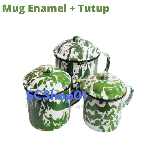 Mug Enamel + Tutup Motif Blirik / Gelas Jadul Brilik 8 10 12 cm Murah Gratis Ongkir