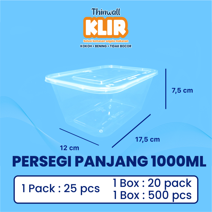 KLIR Thinwall Persegi Panjang / Rectangle 500/650/750/1000 ML Murah Gratis Ongkir