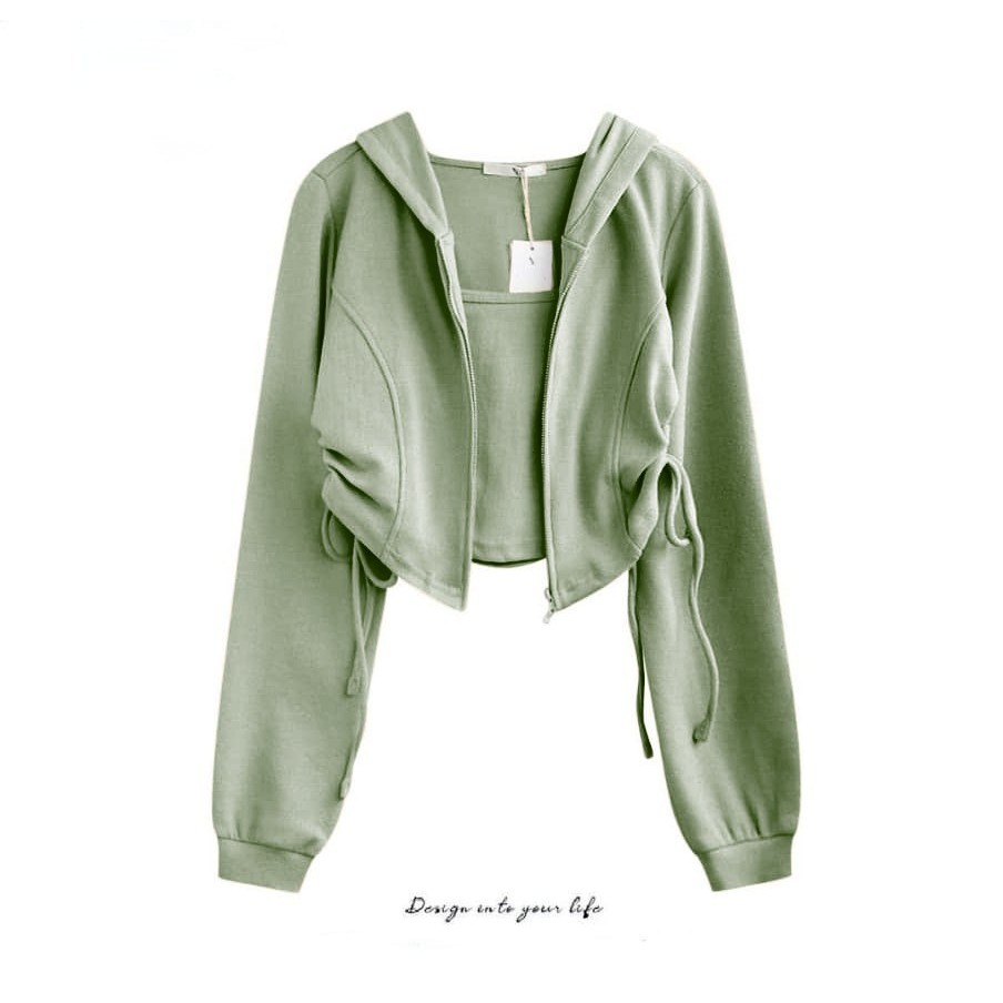 Jaket Wanita Korean Style Adella Crop Zipper Serut - jaket casual atasan wanitan kekinian