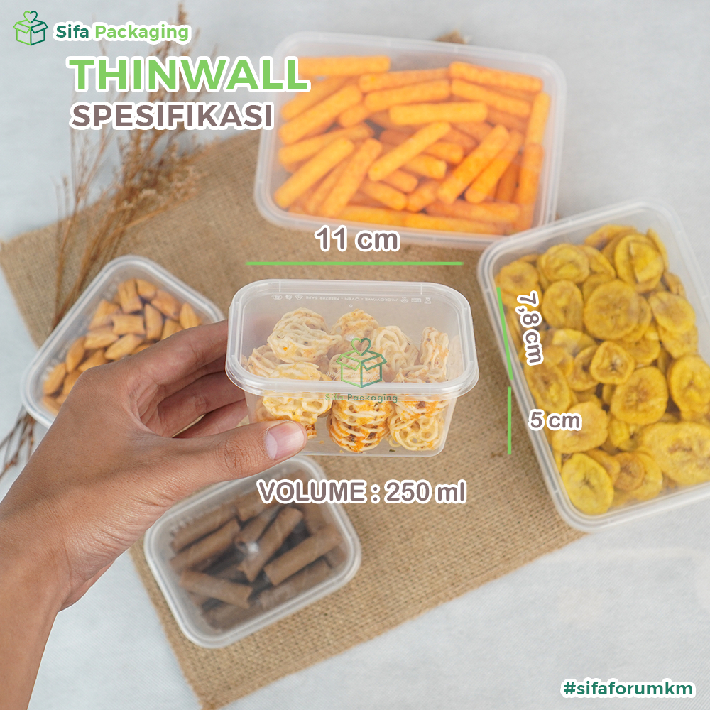 Thinwall Persegi Panjang + Tutup 200ml 250ml 300ml 500ml 650ml 750ml 1000ml Thinwall Wadah Makanan Kotak Rectangle Plast