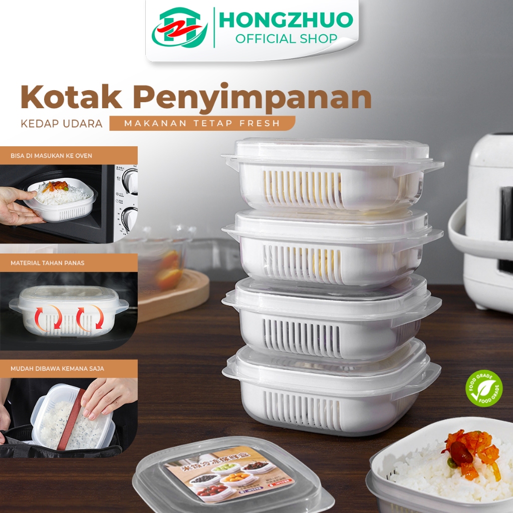 Hongzhuo Food Kontainer Kotak Penyimpanan Makanan Buah Sayuran Saringan Serbaguna Murah Gratis Ongkir
