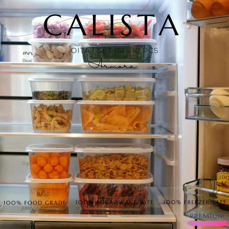 OITA PUTIH BENING FOOD KONTAINER ISI 10PCS / TOPLES KOTAK CALISTA / Sealware AIRTIGHT toples makanan kotak set premium F
