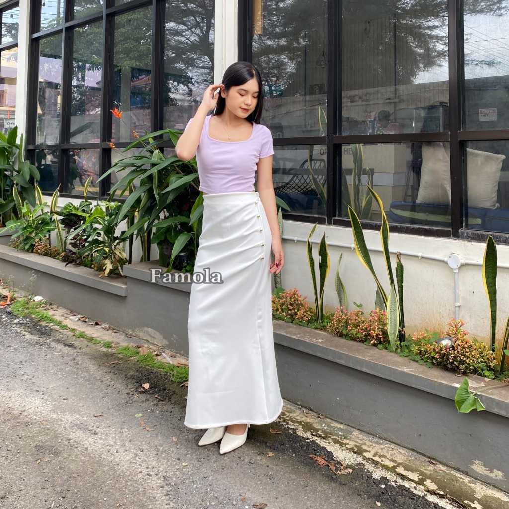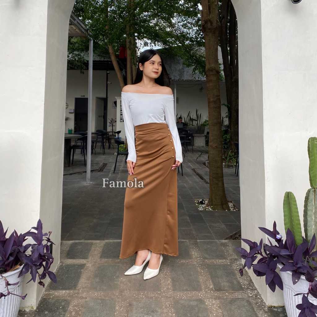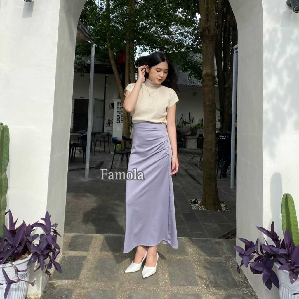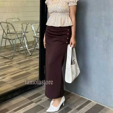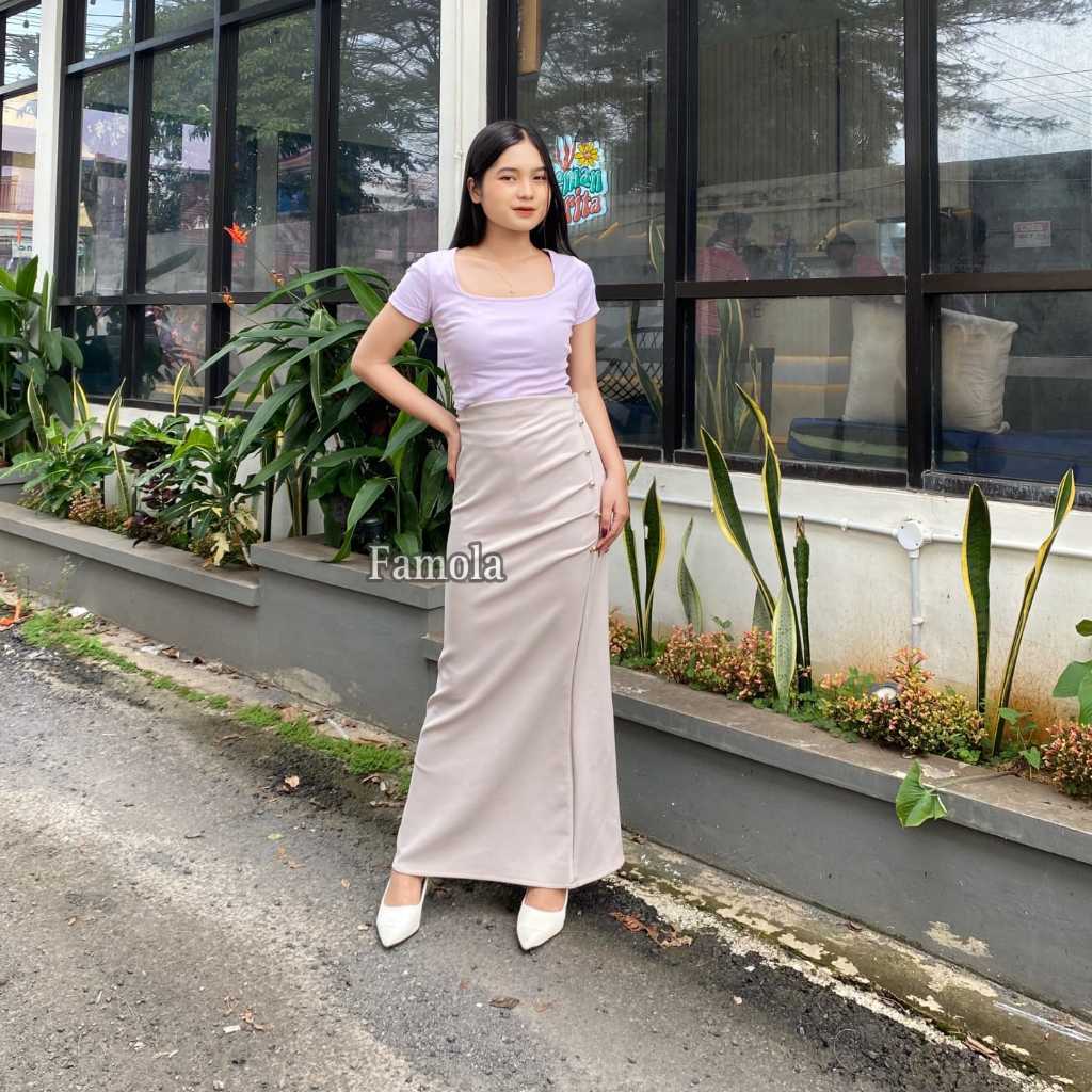 FAMOLA - Jillow Skirt Rok Span Wanita Anti Kusut - Korean Maxi Skirt Rok Flare Scuba Premium - Maxi Skirt Rok Panjang Wanita