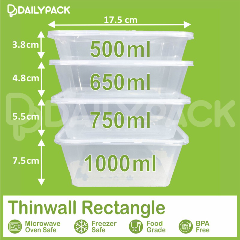 Thinwall RECTANGLE / PERSEGI PANJANG / Kotak Makan Plastik / Food Container Murah Gratis Ongkir