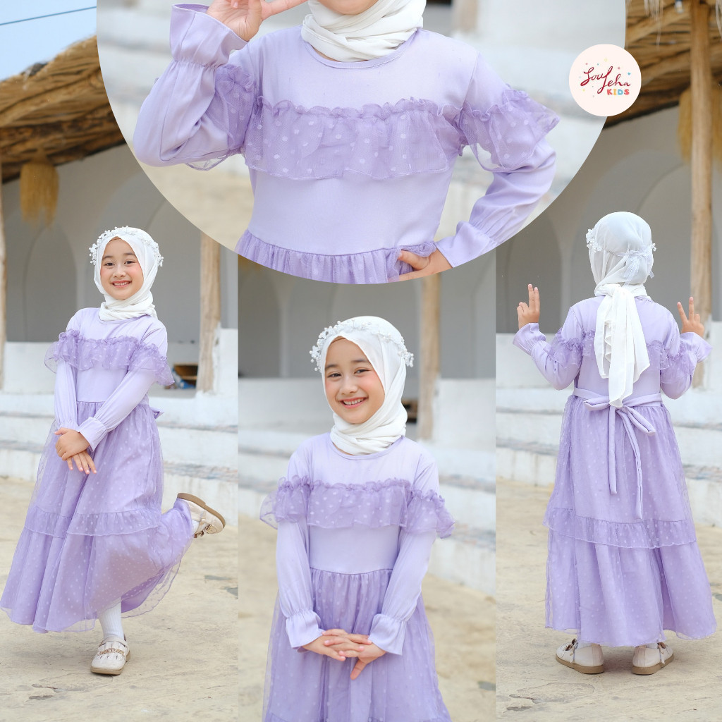[Star] Soulleha Gamis Anak Bonus Jilbab Aura Dress Gamis Lebaran Anak 1-11 Tahun