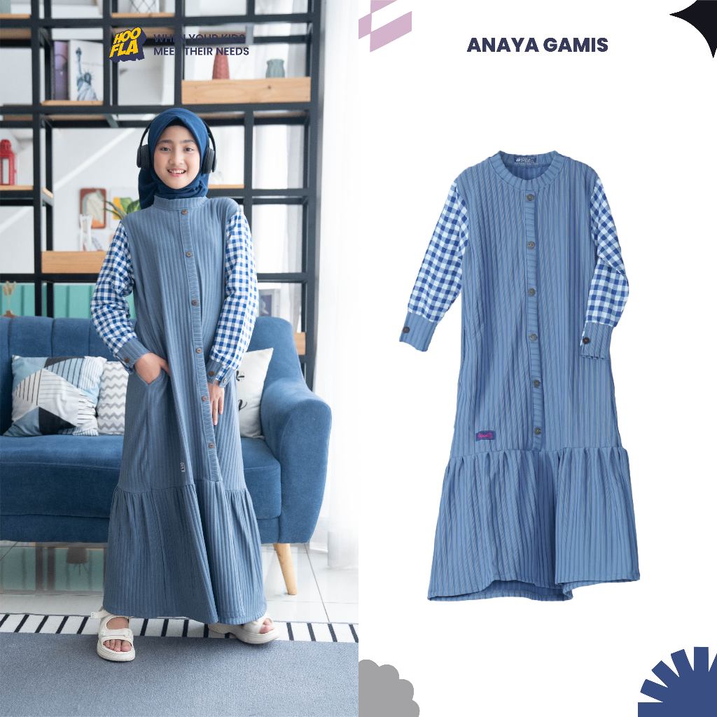 [Star] Hoofla Anaya Gamis Anak Perempuan 5-12 Tahun Muslimah Denim Blue White