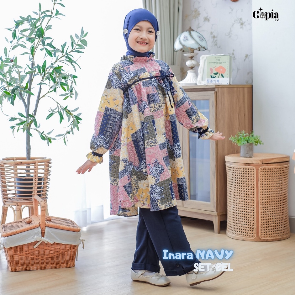 [Star] Copiaco - Inara Setelan Long Tunik Set Celana Anak perempuan Umur 3-12 Tahun Navy