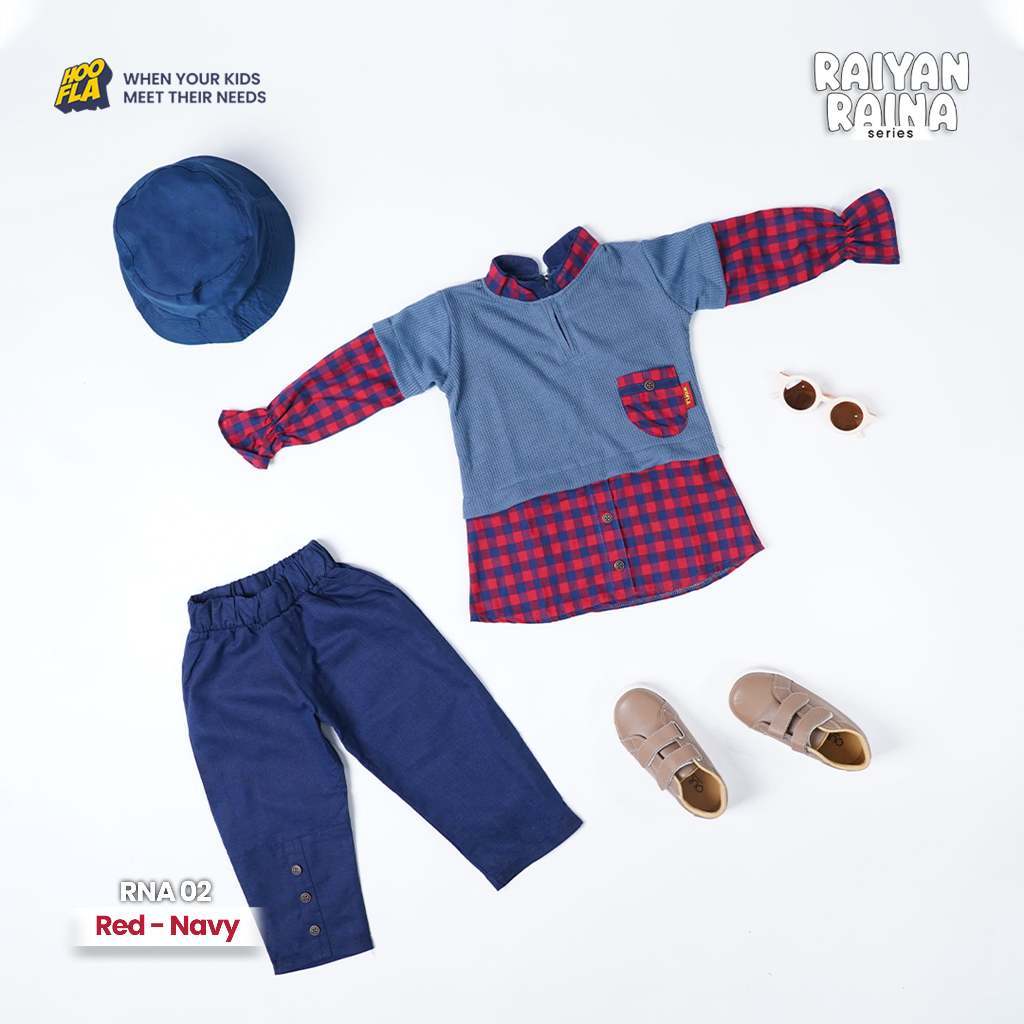 [Star] Hoofla Raina&Raiyan Series Anak Balita 6 Bulan-5 Tahun Setelan Baju Red Navy