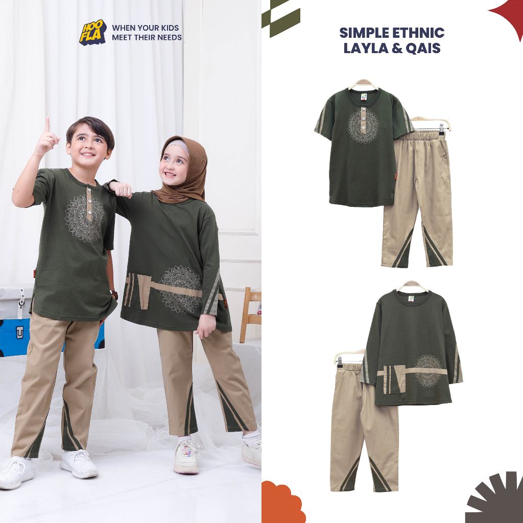 [Star] Hoofla Simple Ethnic Layla Qais Baju Muslimah Anak 5-12 Tahun Setelan Casual Army