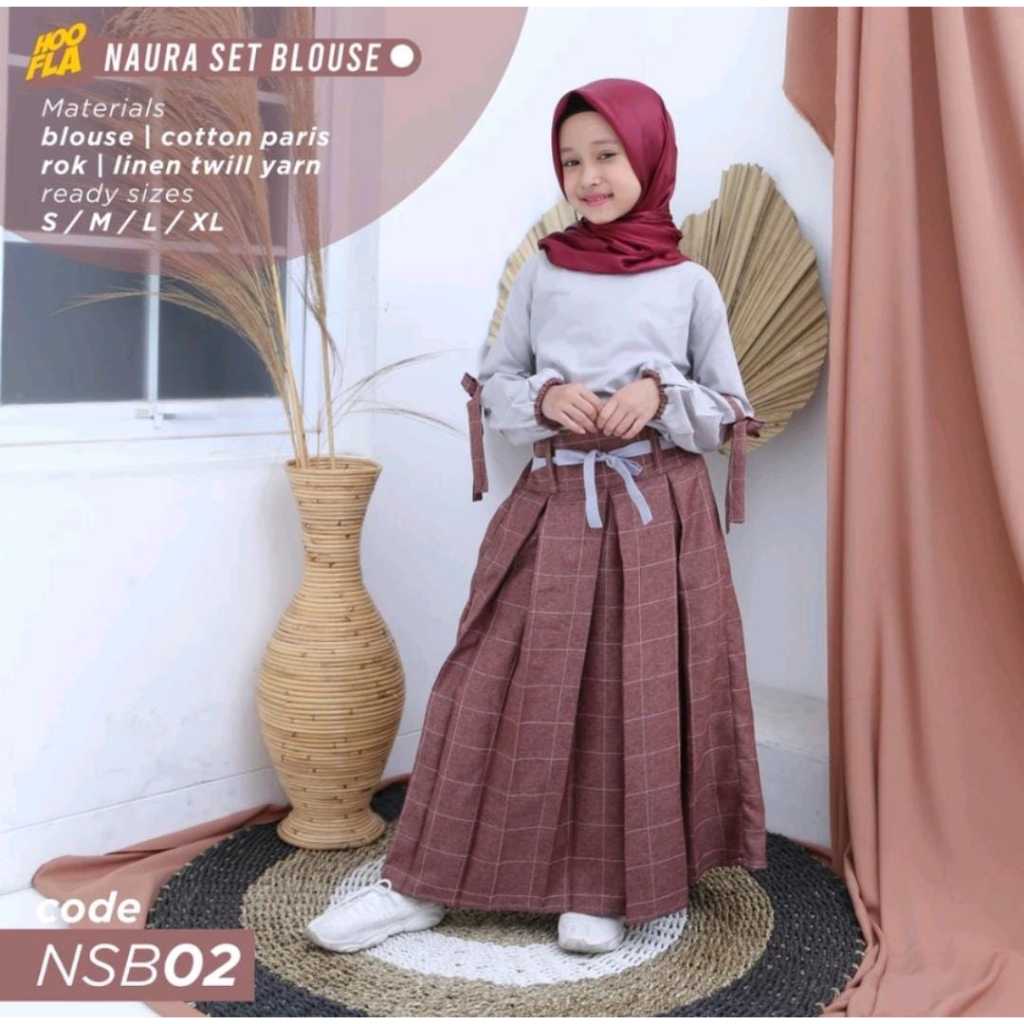 [Star] Hoofla Naura Blouse Celana Rok Anak Perempuan 3-12 Tahun Setelan Muslimah Abu Maroon