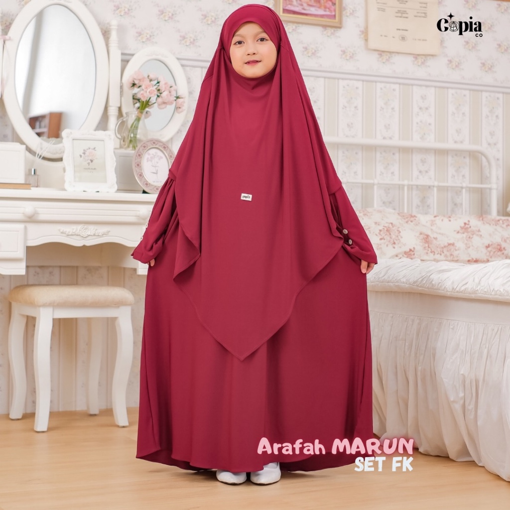[Star] Copiaco - Arafah Gamis Jersey Anak Perempuan Set French Khimar Umur 3-13 Tahun Maron