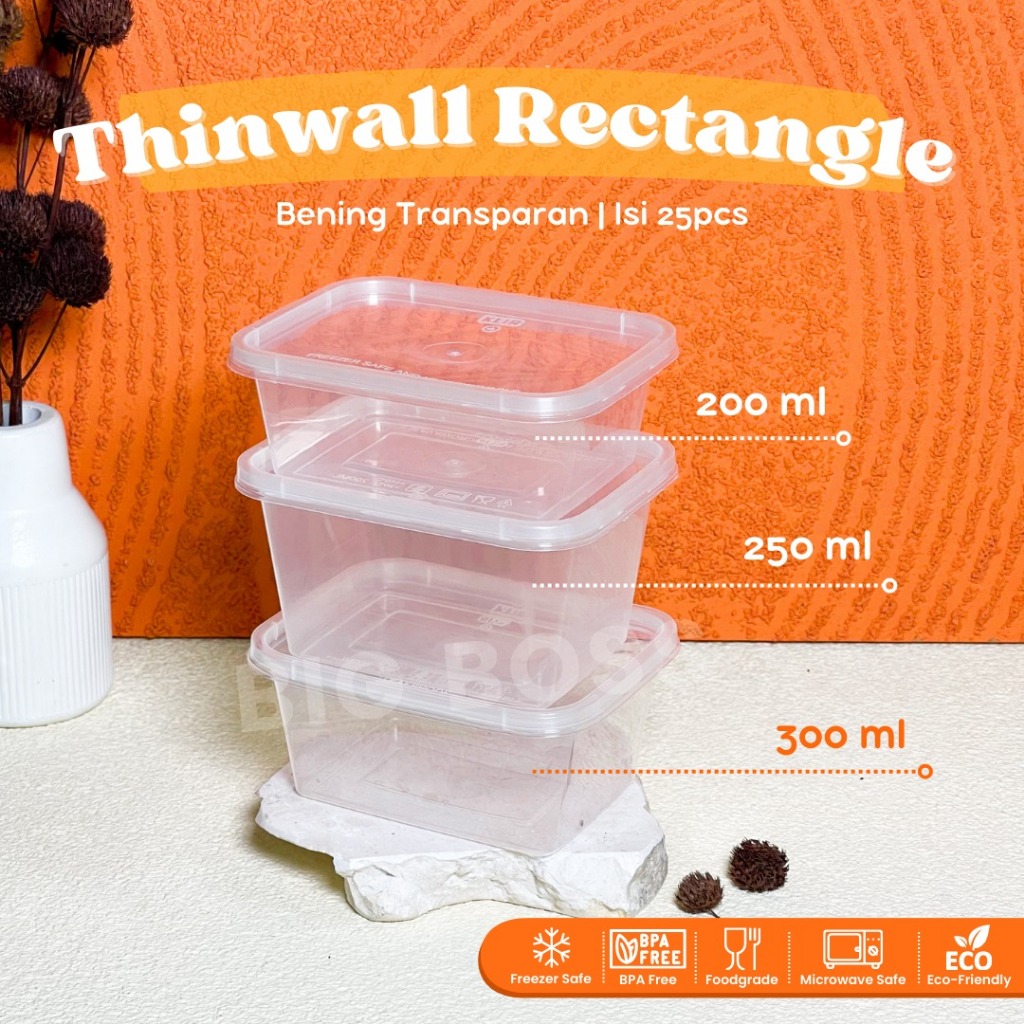 [25PCS] Thinwall Rectangle 200ml 250ml 300ml / Kotak Makan Plastik Food Container Murah Gratis Ongkir