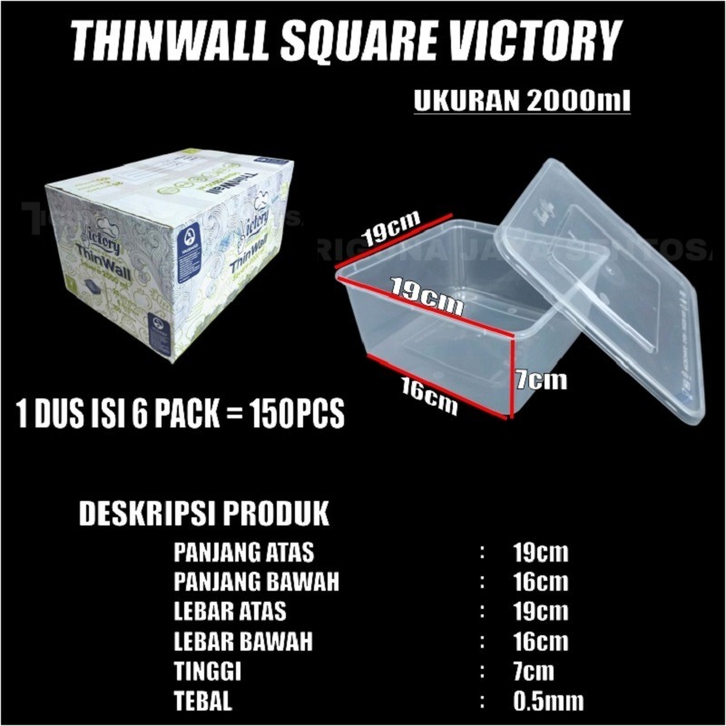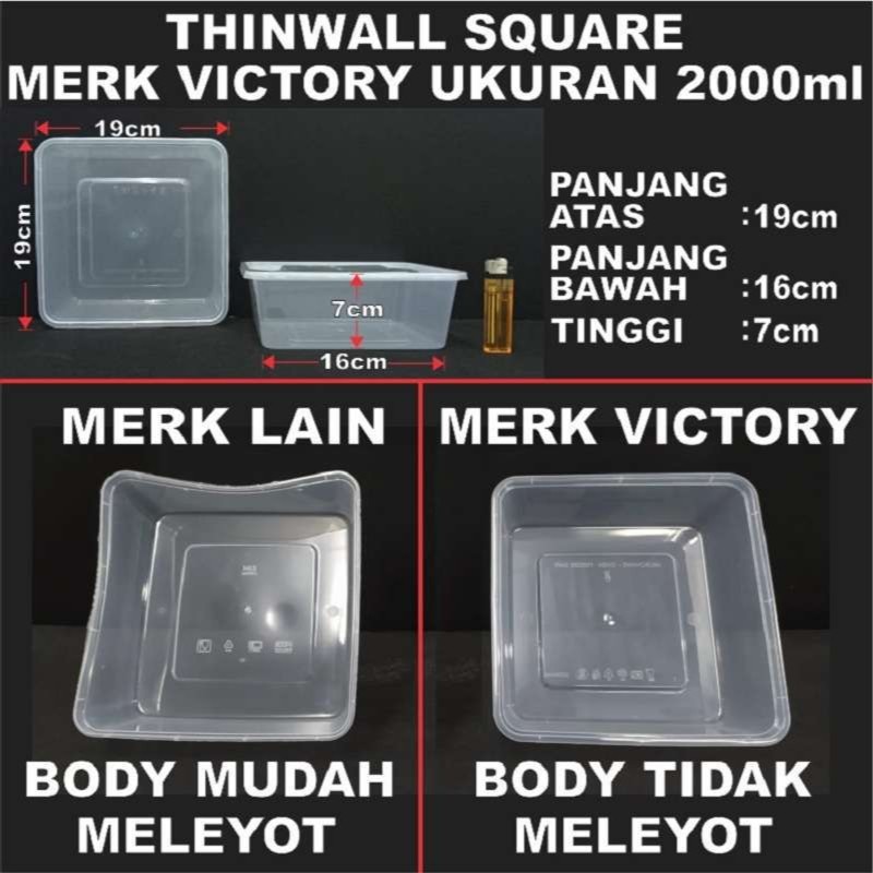 Thinwall SQ Tebal 1000ml 1500ml 2000ml 3000ml Pack Kotak Makanan Square Plastik SBY Murah Gratis Ongkir