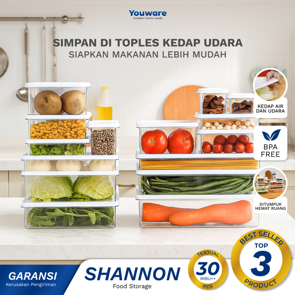 Youware - Shannon (Harga Satuan) Food Preparation / Kotak Penyimpanan Makanan Kulkas PP Food Storage Fridge Organizer Wa