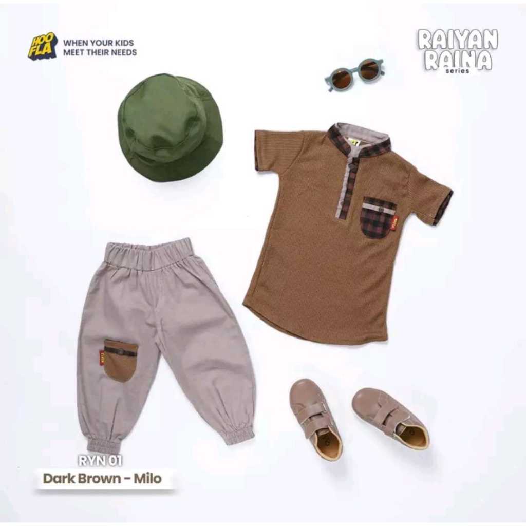 [Star] Hoofla Raina&Raiyan Series Anak Balita 6 Bulan -5 Tahun Setelan Baju Panjang Dark Brown Milo