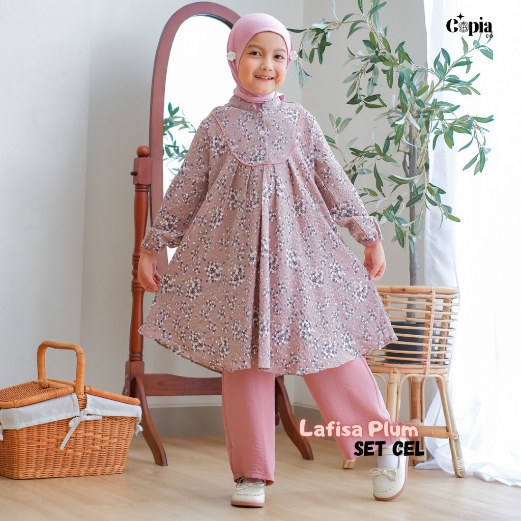 [Star] Copiaco - Lafisa Oneset Anak Perempuan Setelan Tunik Set Celana Umur 3-12 Tahun - Plum