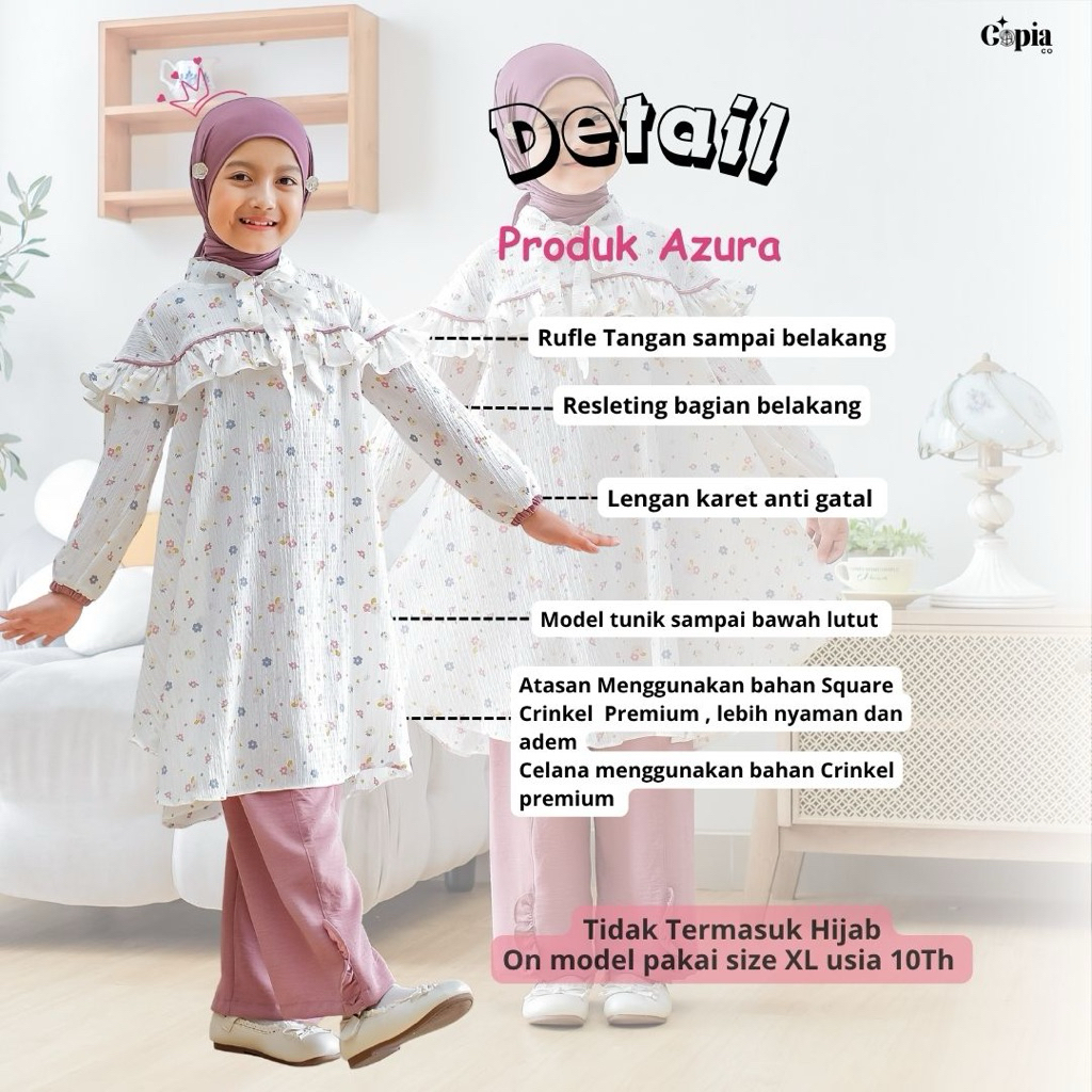 [Star] Copiaco - One Set Azura Setelan Long Tunik Set Celana Anak Perempuan - Umur 3 - 12 Tahun All Varian