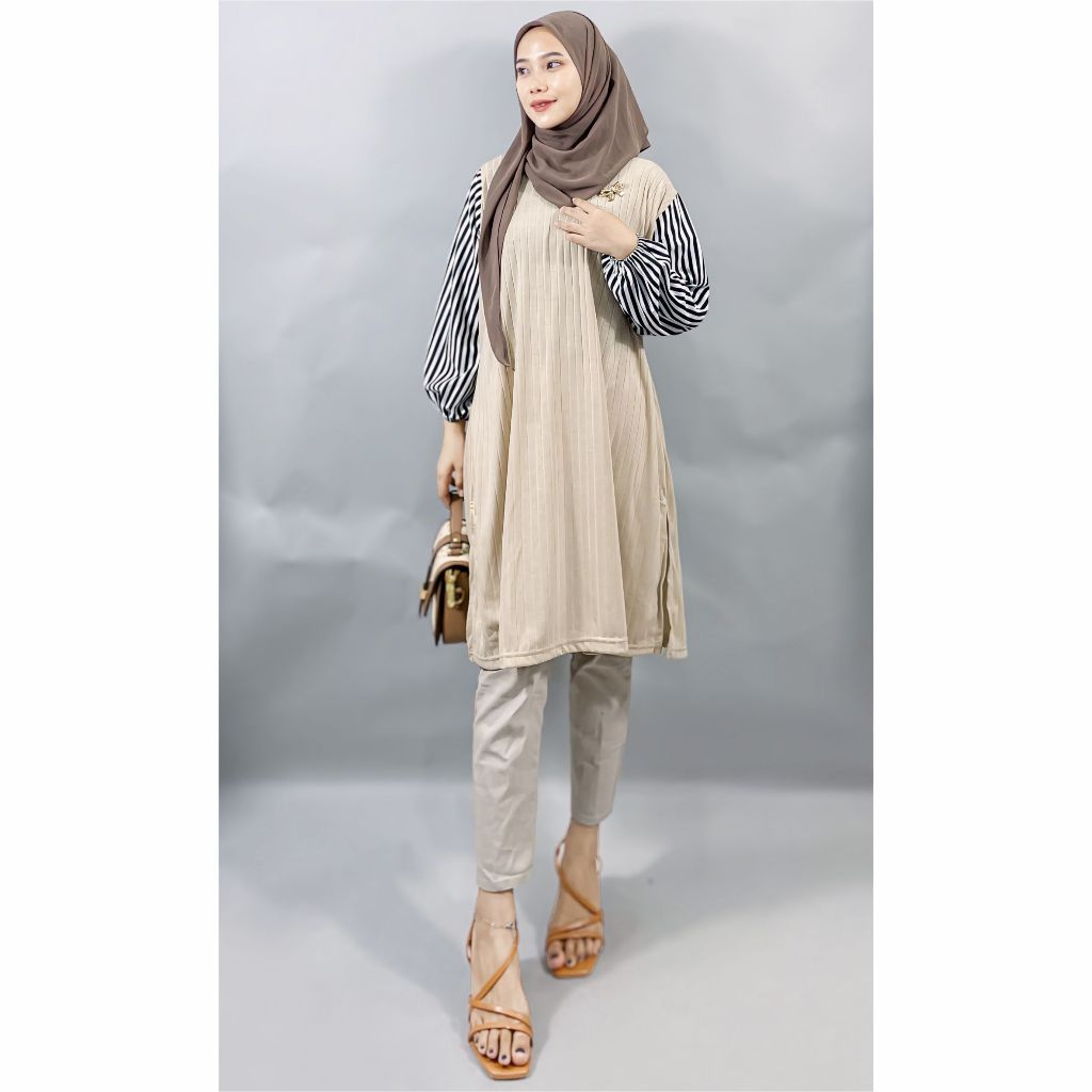 [Star] Tunik Polos Kombinasi Knit Osaka Montyfashion
